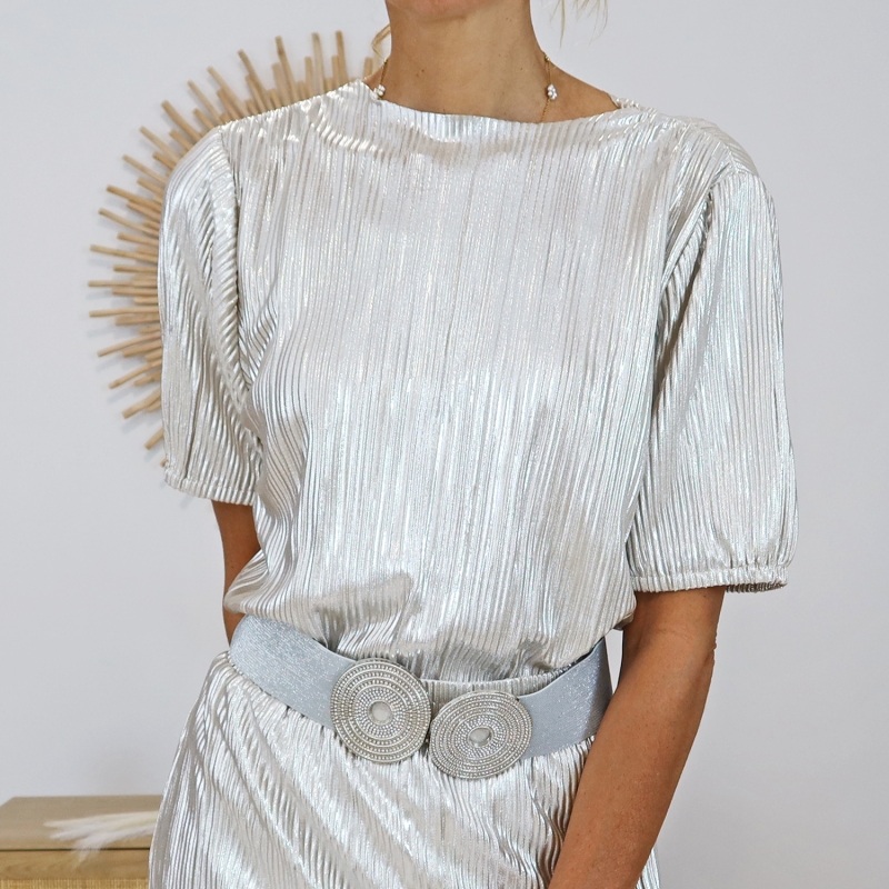 Le mannequin mesure 165 cm, présente la taille XS, sa taille habituelle