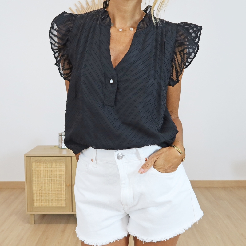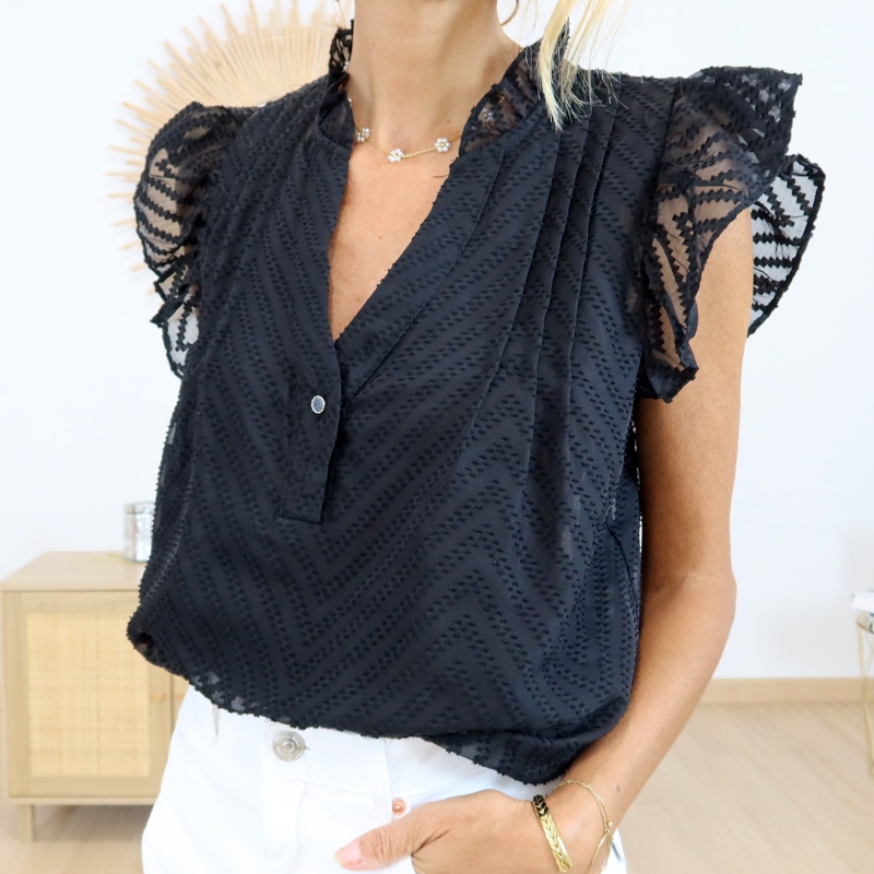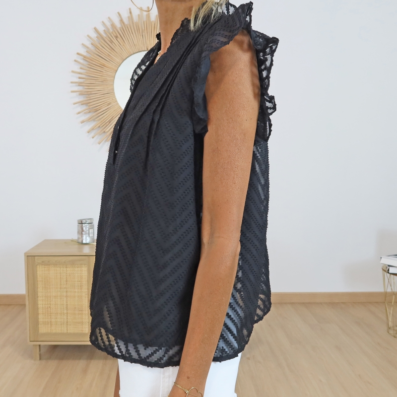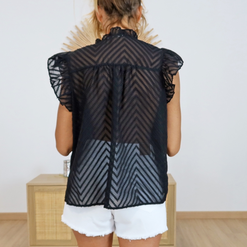 Le mannequin mesure 165 cm, présente la taille SM, porte un 36 habituellement