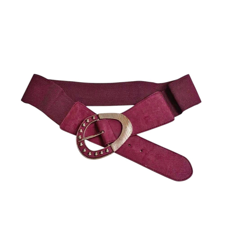 Ceinture Elisa femme đ€ : ceinture Ă©lastique bordeaux avec boucle fantaisie dorĂ©e. Taille unique, convient du 36 au 42/44. Chic et confortable.