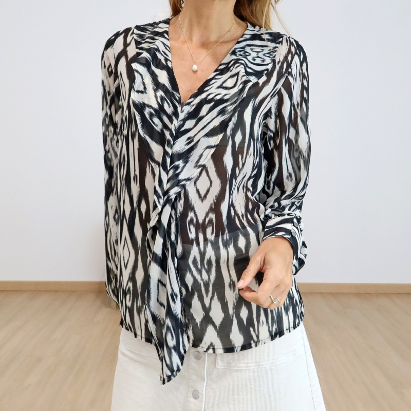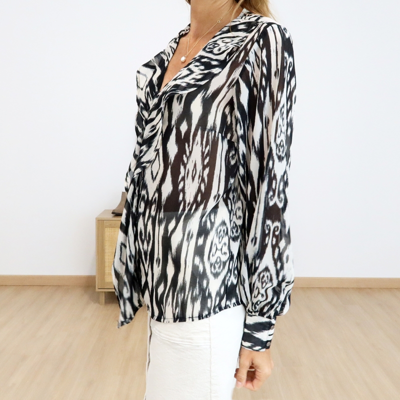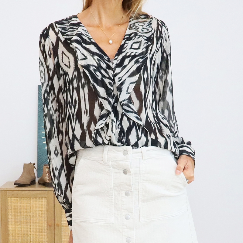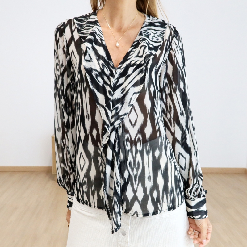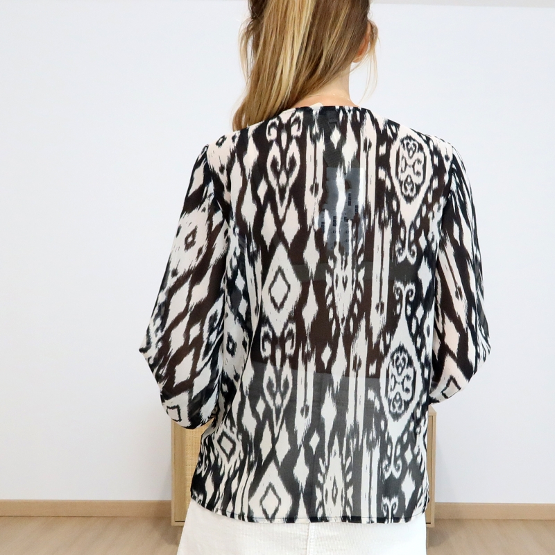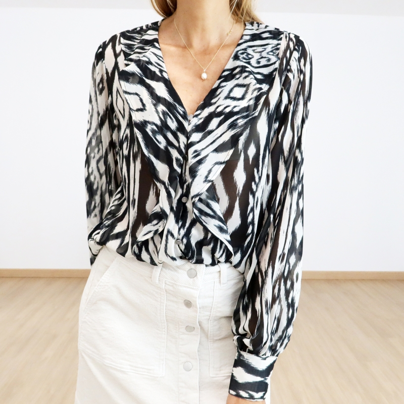 Le mannequin mesure 165 cm, présente la taille XS, sa taille habituelle.
