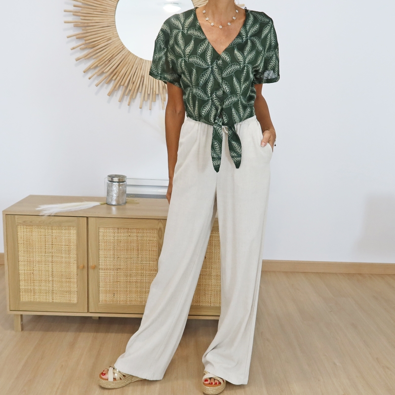 Sa fermeture à boutons accompagnée d’un nœud lui confère une allure élégante et ajustable selon vos envies. Doublé sur la partie avant pour un confort optimal, il est conçu en 100% polyester, garantissant fluidité et légèreté. Avec sa longueur de 43 cm, il se marie parfaitement avec un pantalon taille haute ou une jupe élégante.