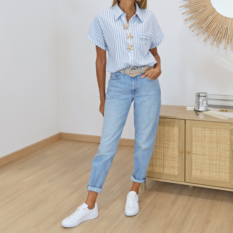Le mannequin mesure 165 cm, présente la taille SM, porte un 36 habituellement