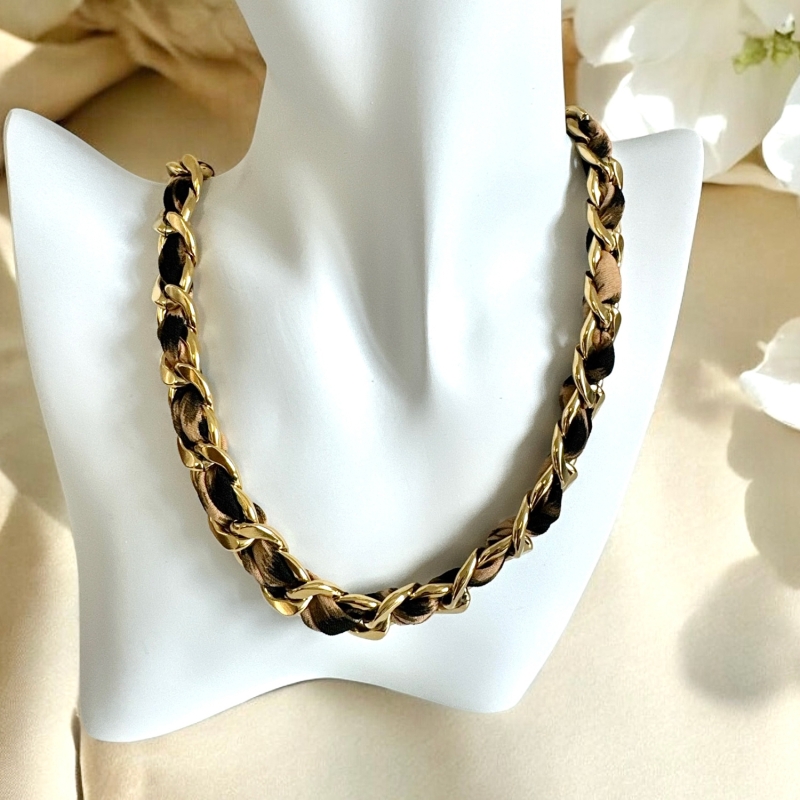 Chaine entrelacée d'un ruban léopard