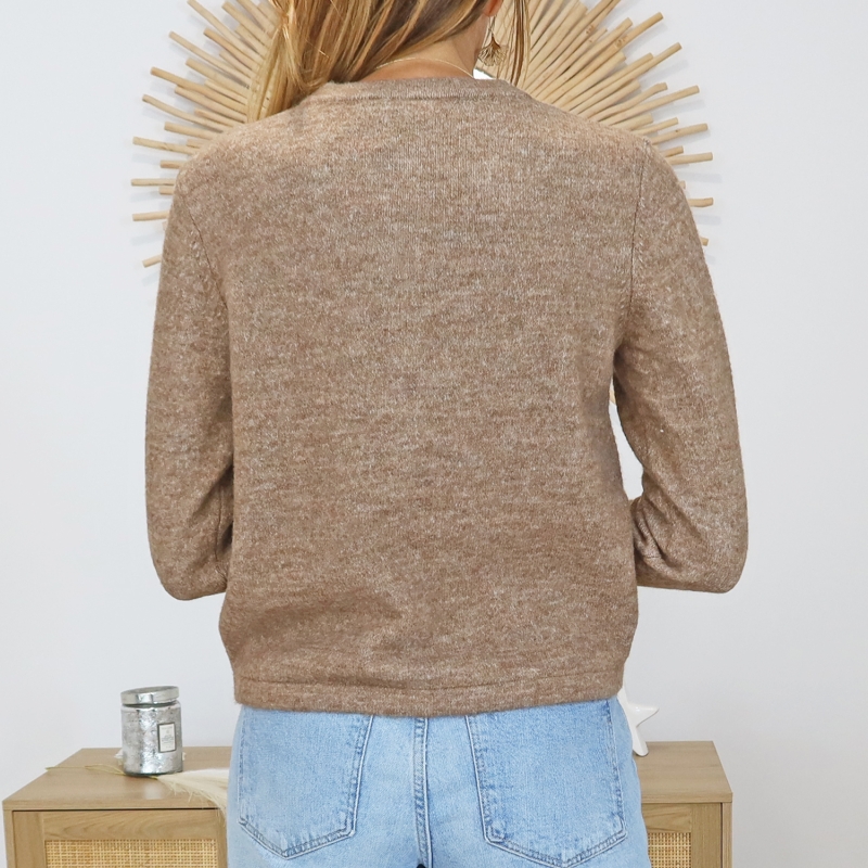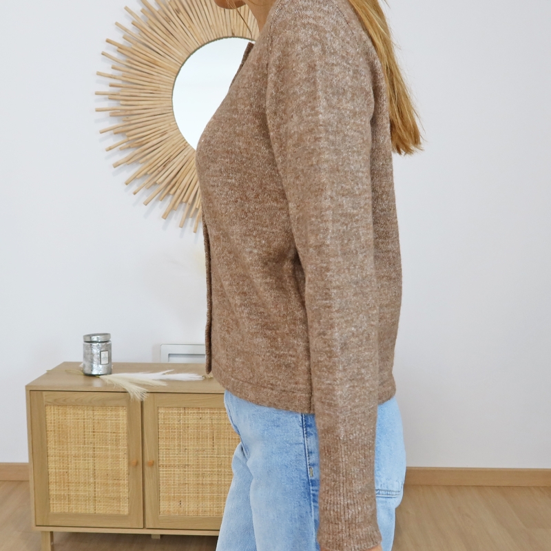 Le gilet Kaniel caramel femme 🍯 : coupe droite, col arrondi et boutons argentĂ©s chic.