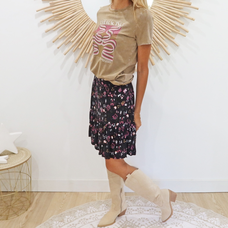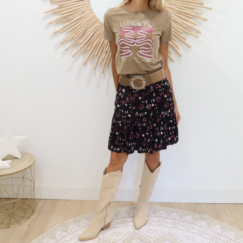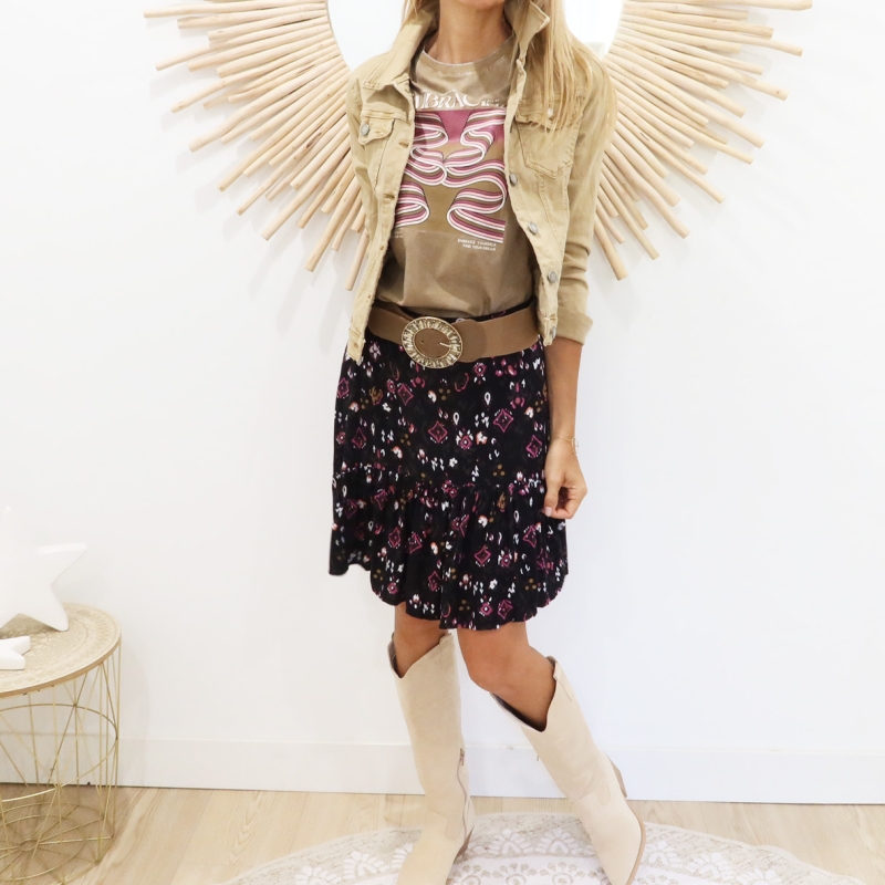 Le mannequin mesure 165 cm, présente la taille 34, porte un petit 36 habituellement