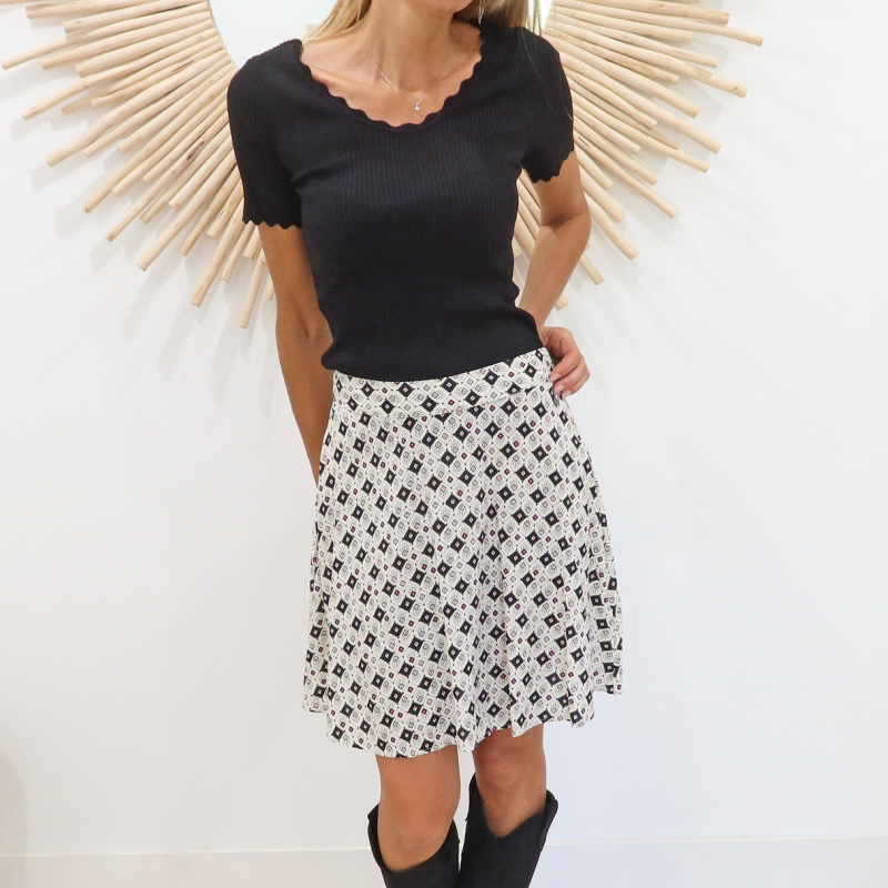 Le mannequin mesure 165 cm, présente la taille 34, porte un petit 36 habituellement