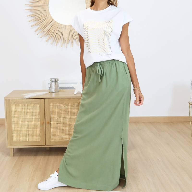 Le mannequin mesure 165cm et présente la taille 34, sa taille habituelle