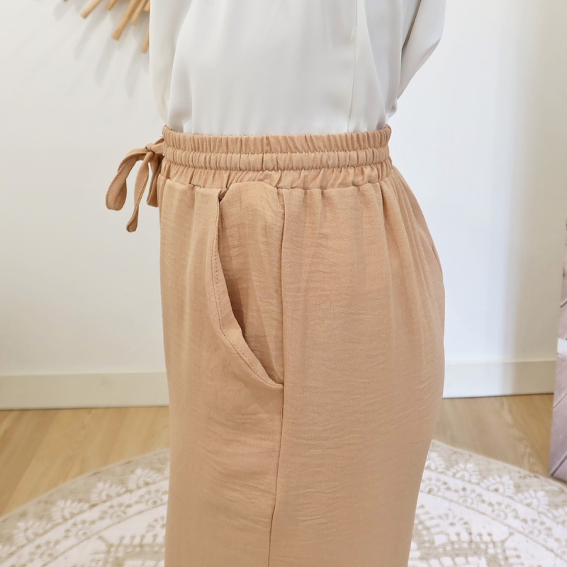 Pantalon fluide, taille élastique +lien à nouer