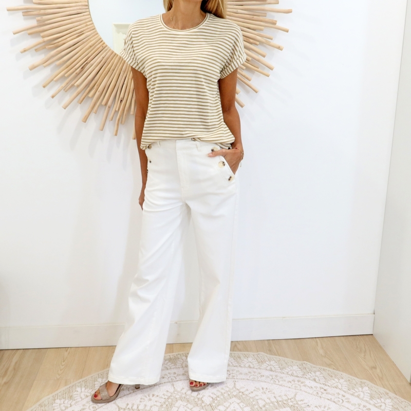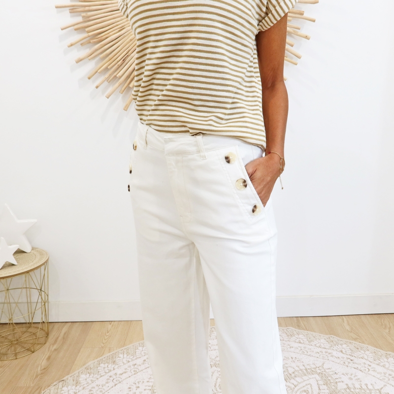 Composition: 58% coton, 31% viscose, 8% polyester, 3% élasthanne.