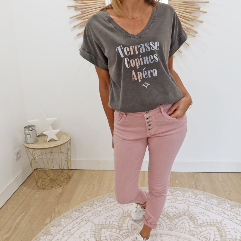 Jean 5 poches fermeture boutons