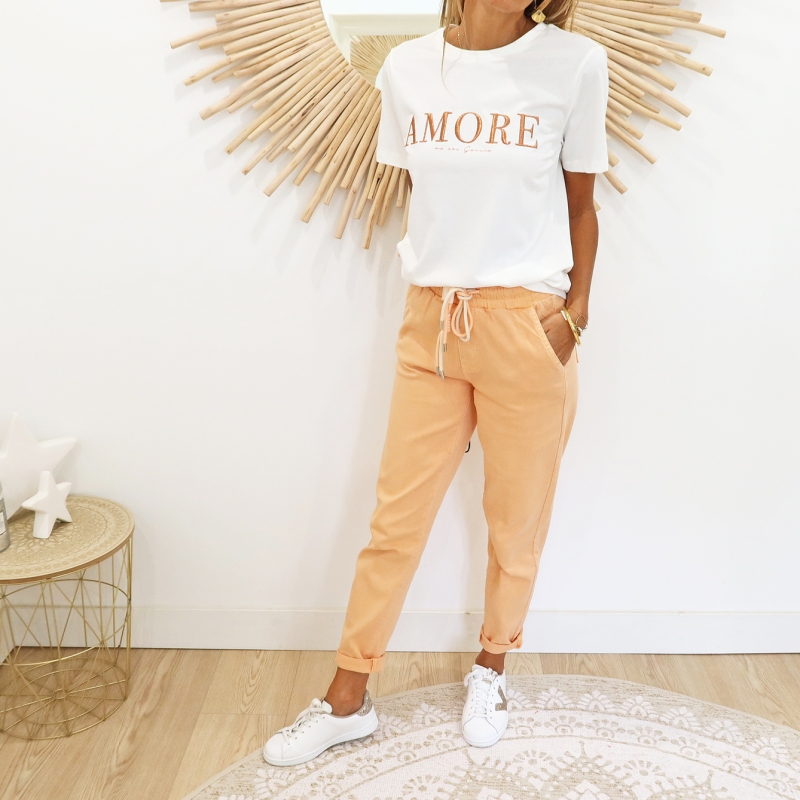 Le mannequin mesure 165 cm, présente la taille XS, sa taille habituelle
