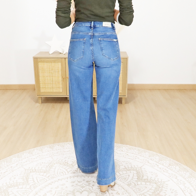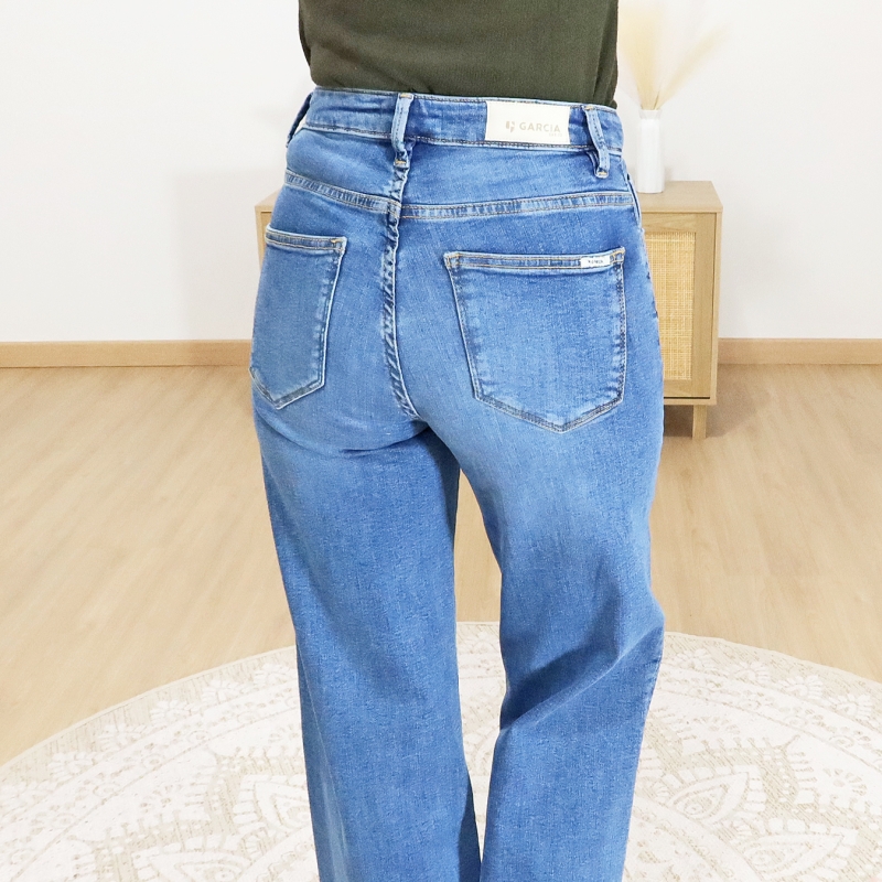 Le mannequin mesure 165 cm, présente la taille 34, sa taille habituelle chez Garcia.