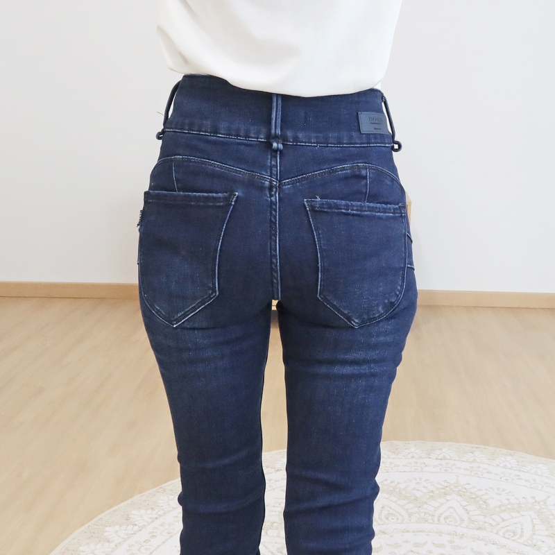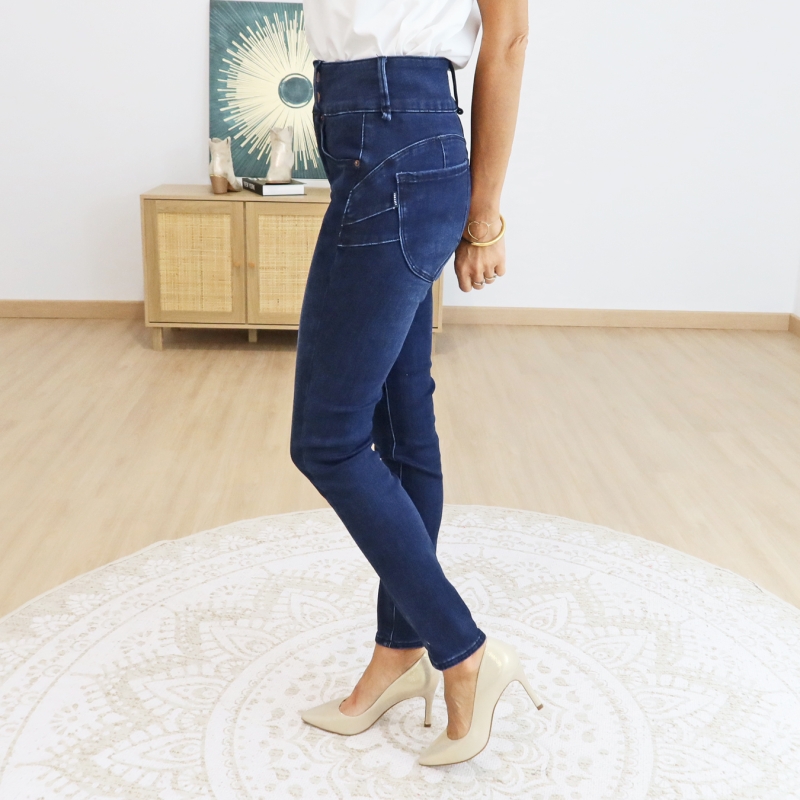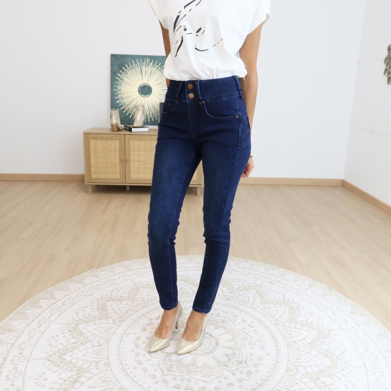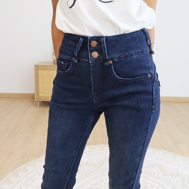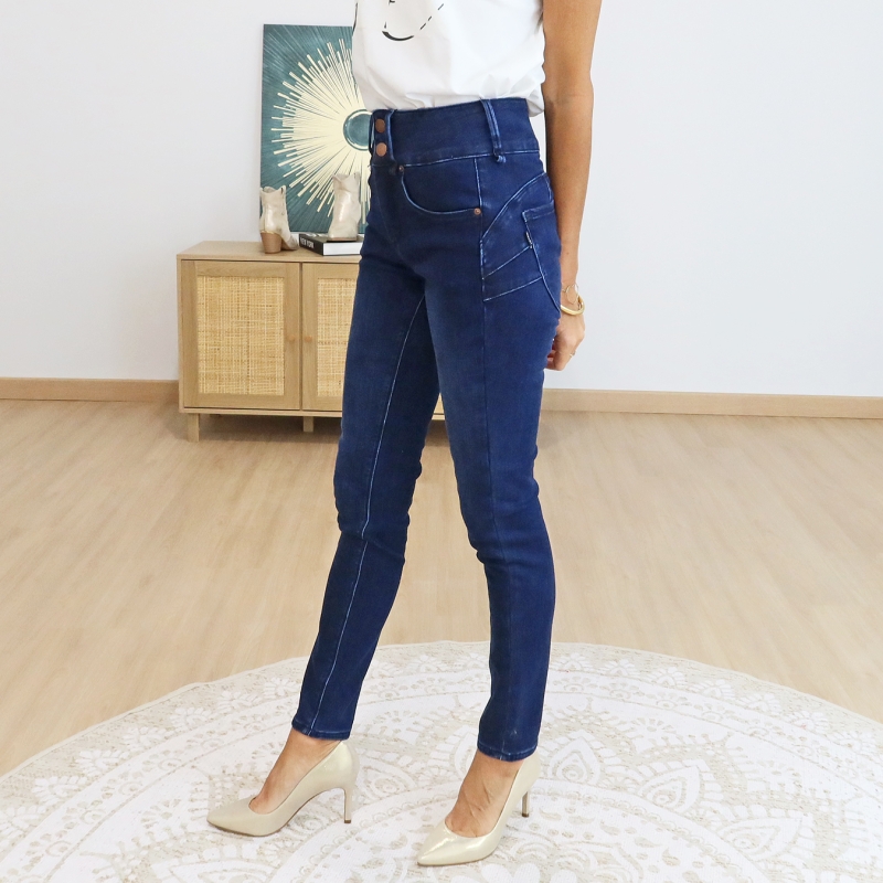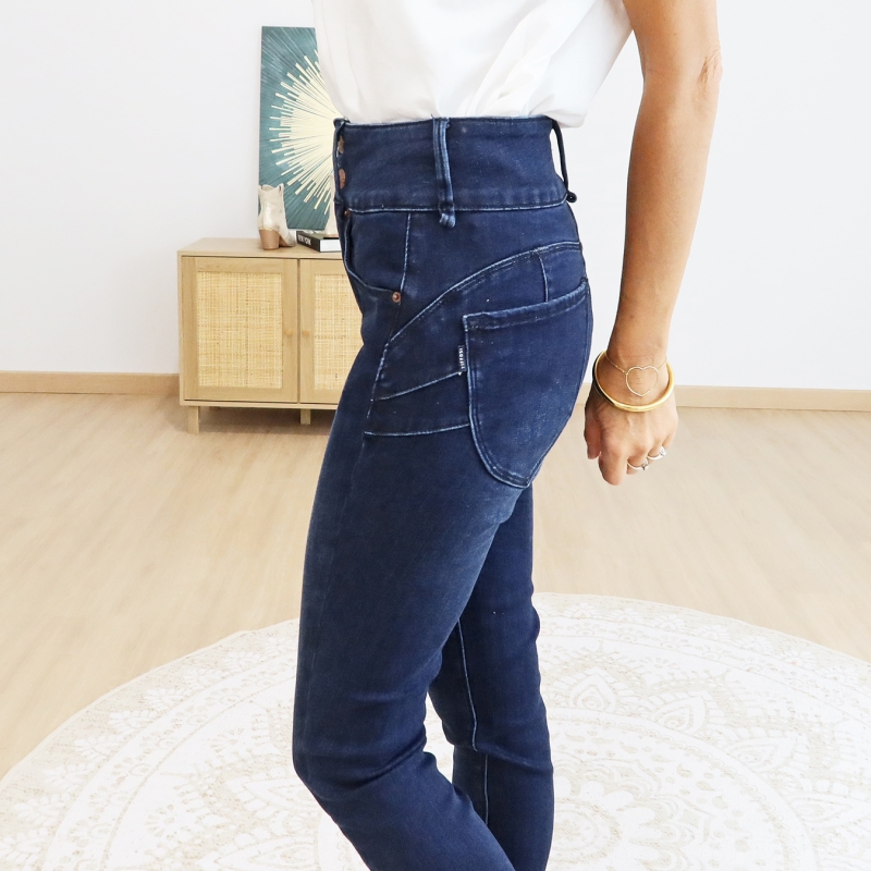 Taille haute avec ceinture large et double boutons , effet push-up sublimant.