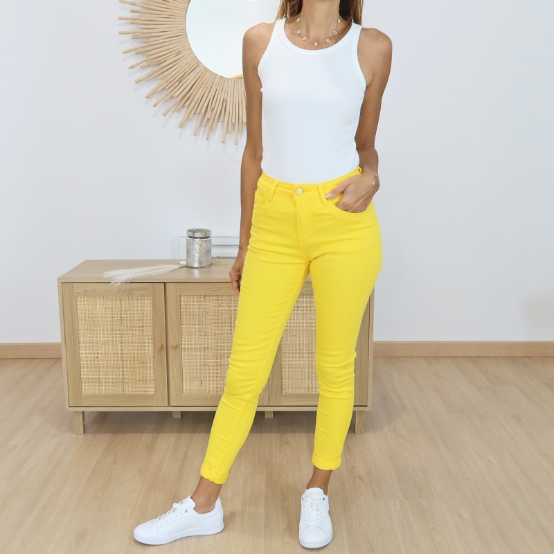 Ajoutez une touche de dynamisme à votre garde-robe avec ce jean slim coloris jaune, une pièce lumineuse et audacieuse qui allie style et bien-être. Sa matière stretch offre une grande liberté de mouvement et un confort optimal, parfait pour vous accompagner toute la journée.