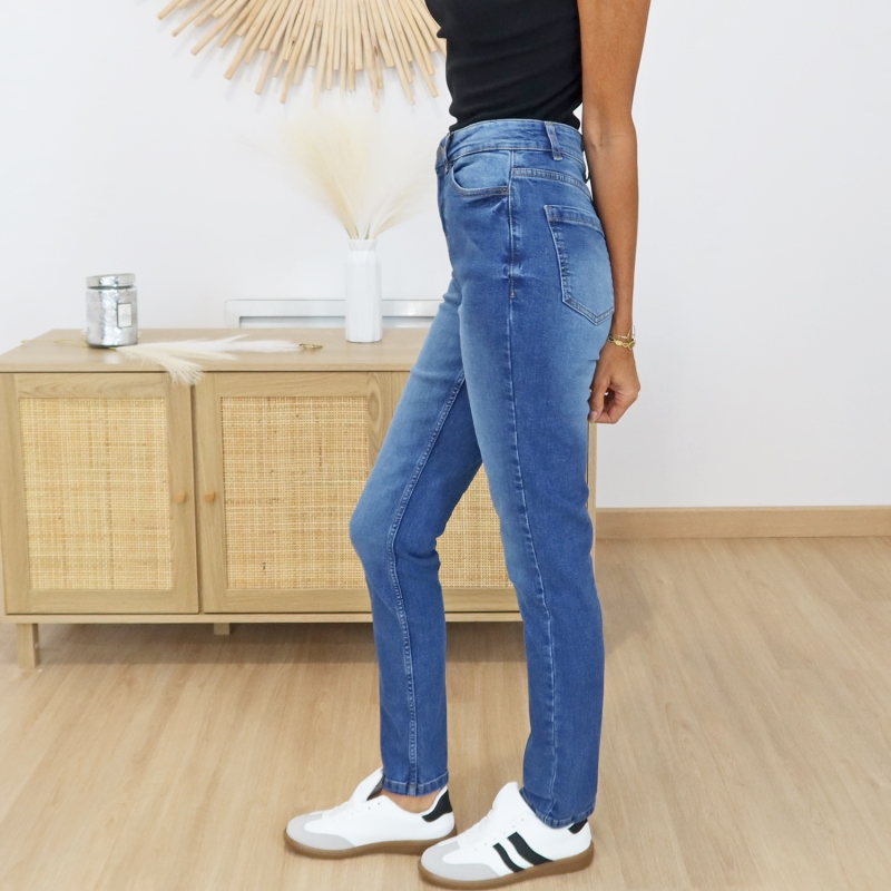 Jean Kawillow femme 👖 : coupe slim fit, denim bleue jean, taille 27 cm et entrejambe 72 cm. Taille habituelle conseillĂ©e, pas de coupe petite.