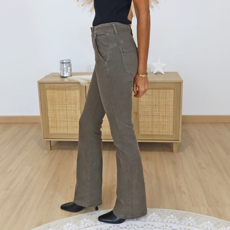 Jean femme bootcut đ« : coupe Ă©vasĂ©e tendance, coloris chocolat clair et confort stretch. Disponible du 34 au 42.