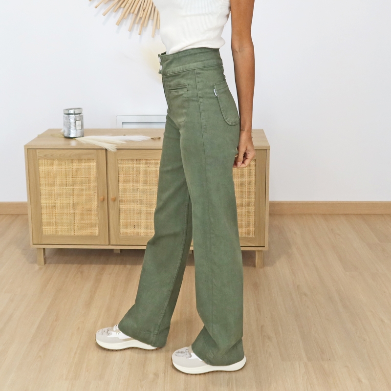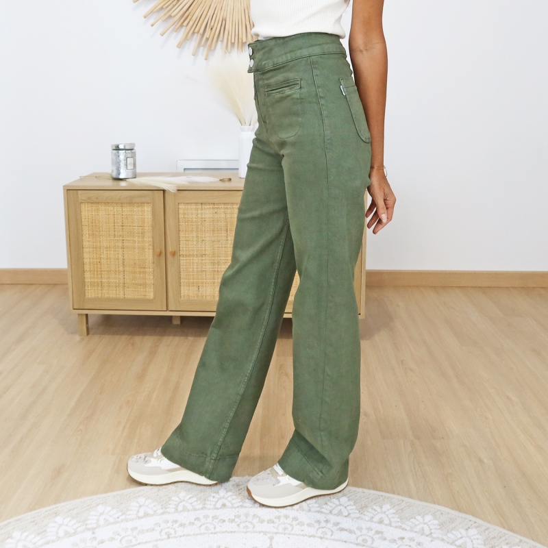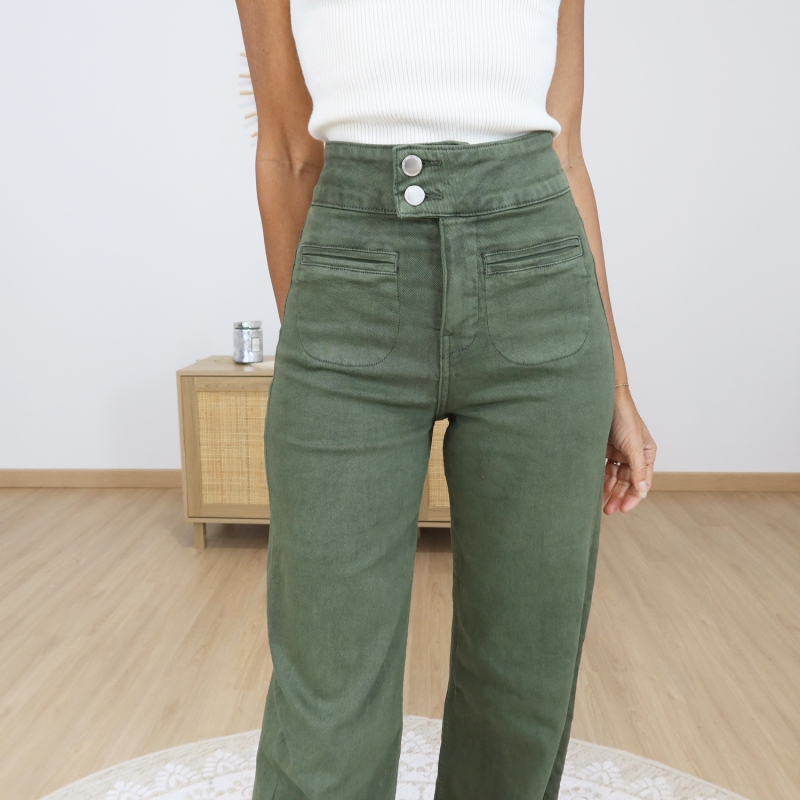 Jean kaki femme đż : coupe straight large tendance, confortable et moderne. Disponible du 36 au 42.