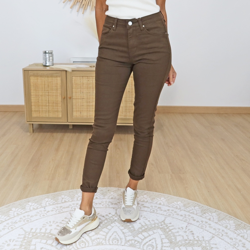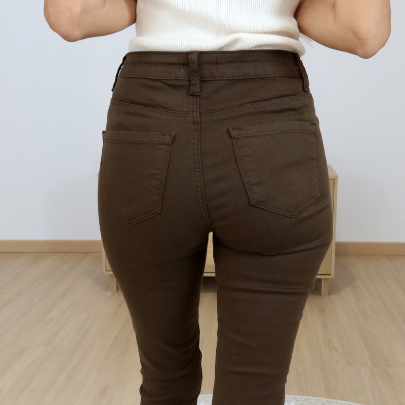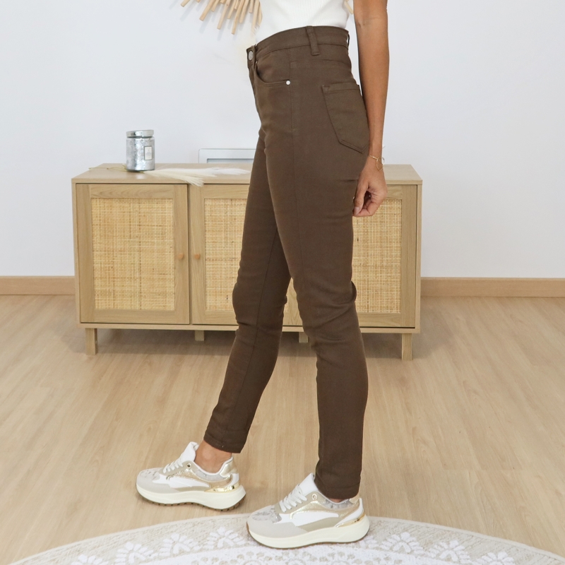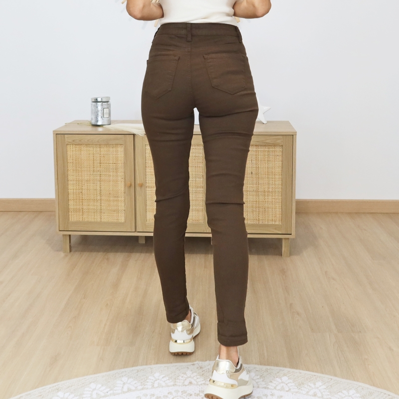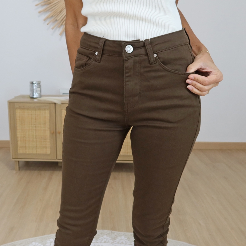 Un jean slim féminin au coloris chocolat élégant, confortable, flatteur et facile à assortir — la pièce parfaite pour sublimer vos looks de saison 💫