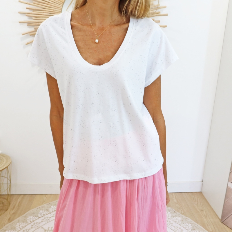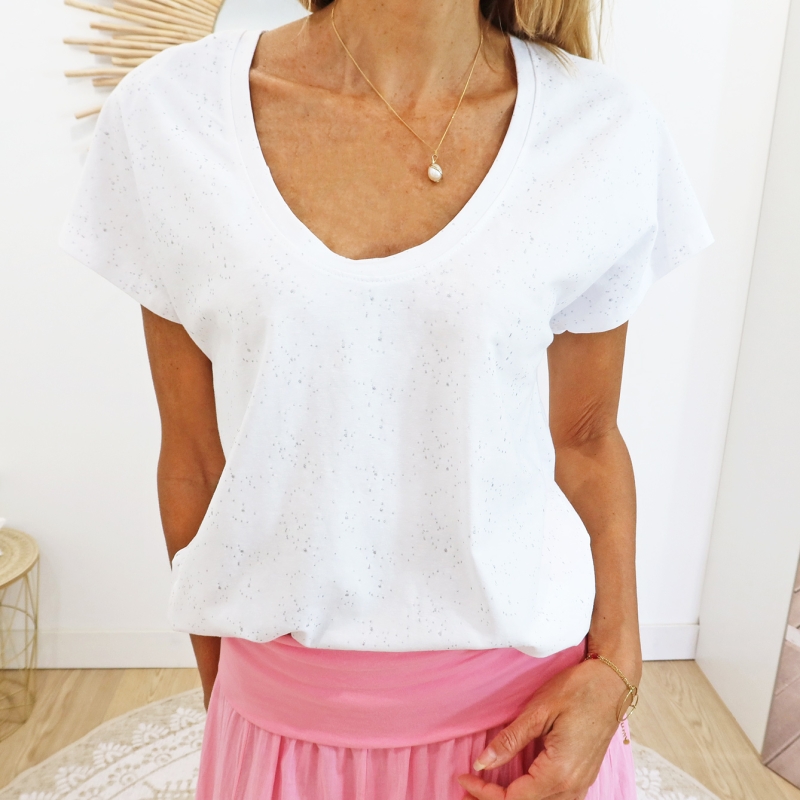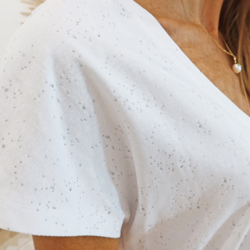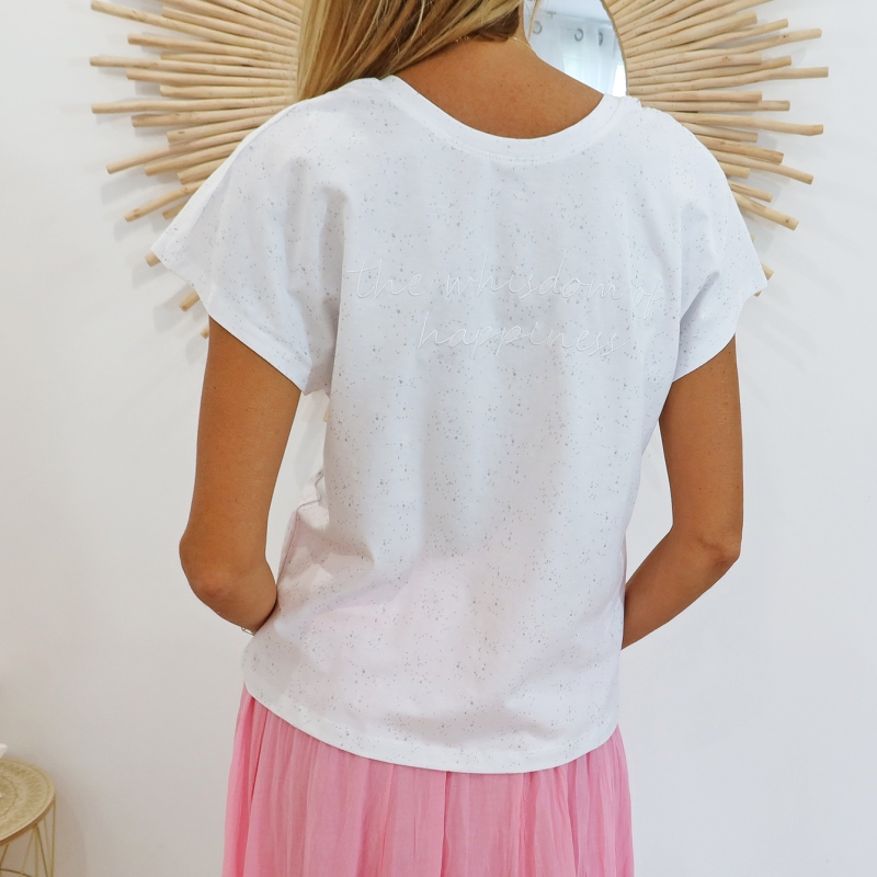 Brodé The Whisdon off happiness et incrustation pailletés argentée.
