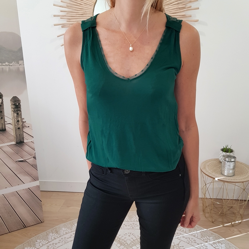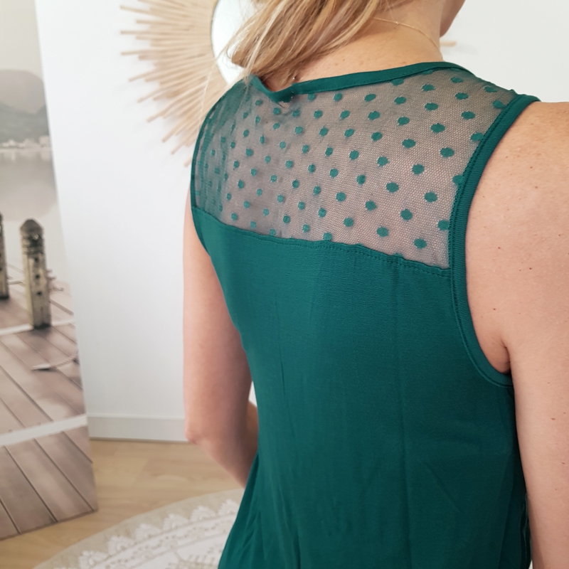 Le mannequin mesure165 cm, présente la taille XS, porte du 36 habituellement