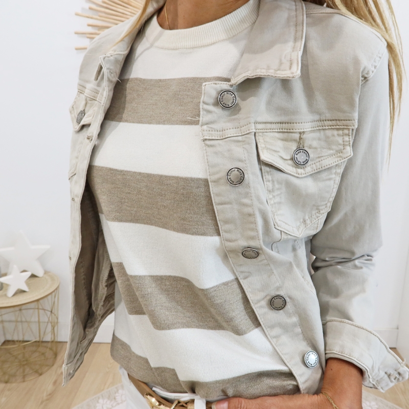 Coloris rayé écru et beige taupe