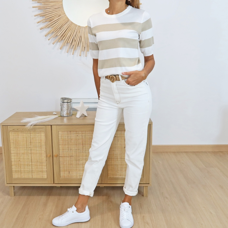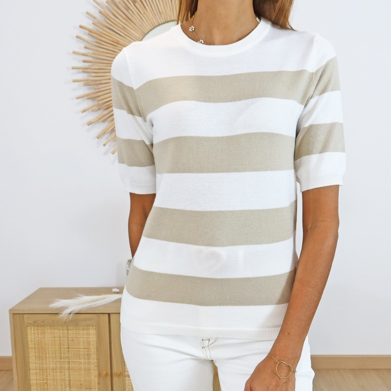 Coloris rayé taupe et écru