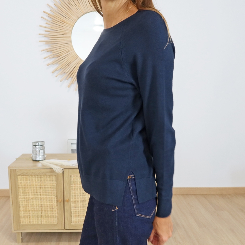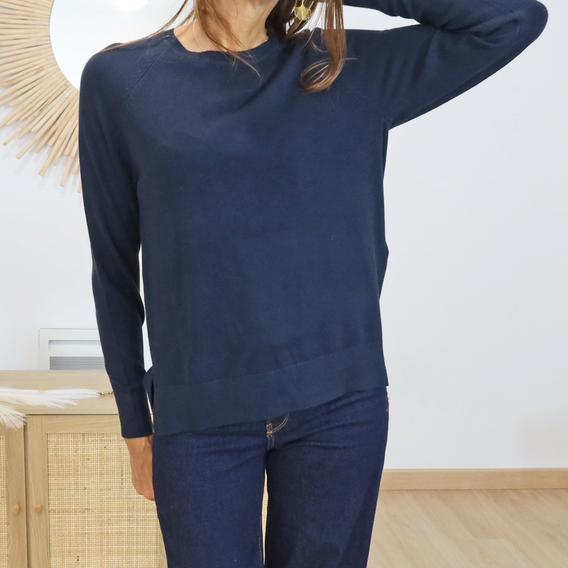 Le Pull Théa marine est un basique chic à avoir dans sa garde-robe. Sa coupe droite apporte confort et modernité, tandis que sa maille légère et douce en viscose vous enveloppe avec fluidité. Une pièce polyvalente, idéale aussi bien avec un jean casual qu’une jupe élégante.