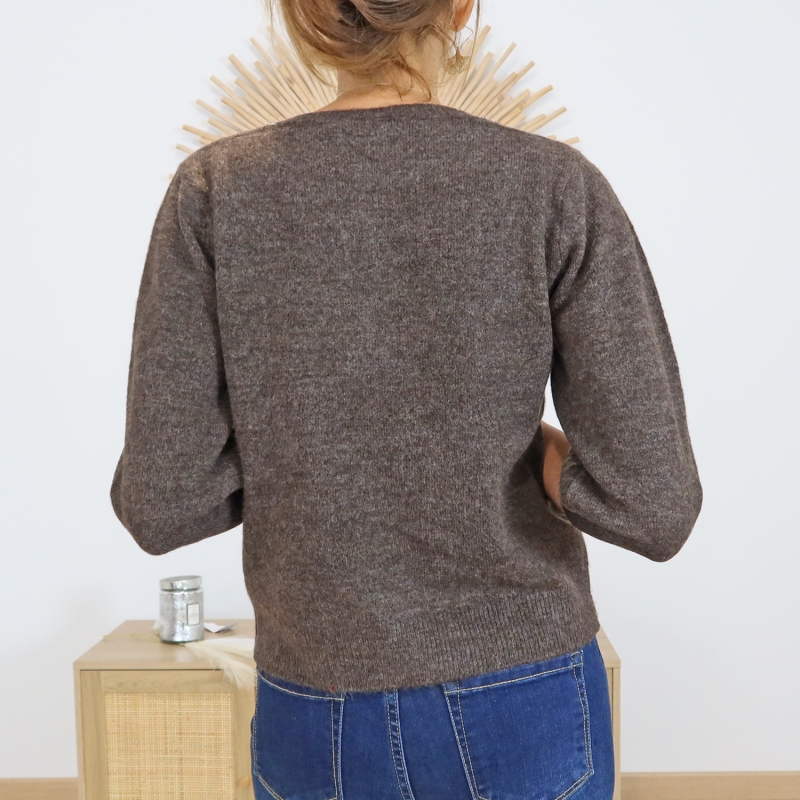 Pull femme Kaffe KAMERIDITH – ÉlĂ©gance chocolat & dĂ©tails lumineux ✹