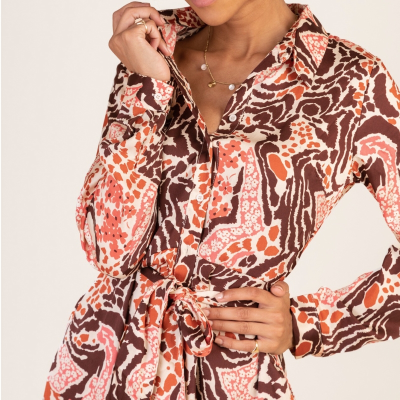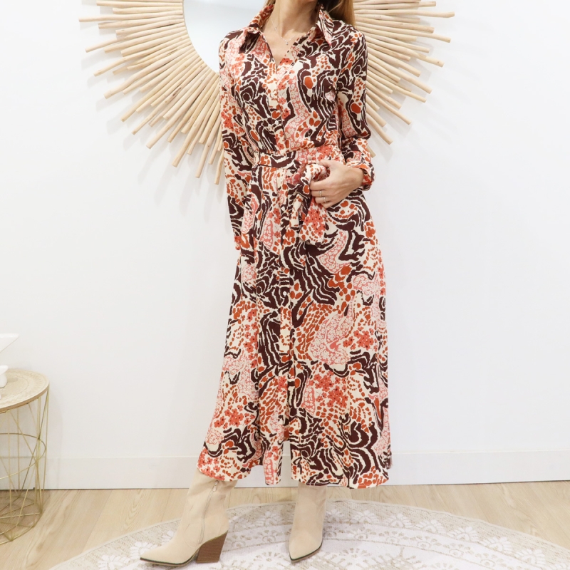 Le mannequin mesure 170 cm, présente la taille S, sa taille habituelle.