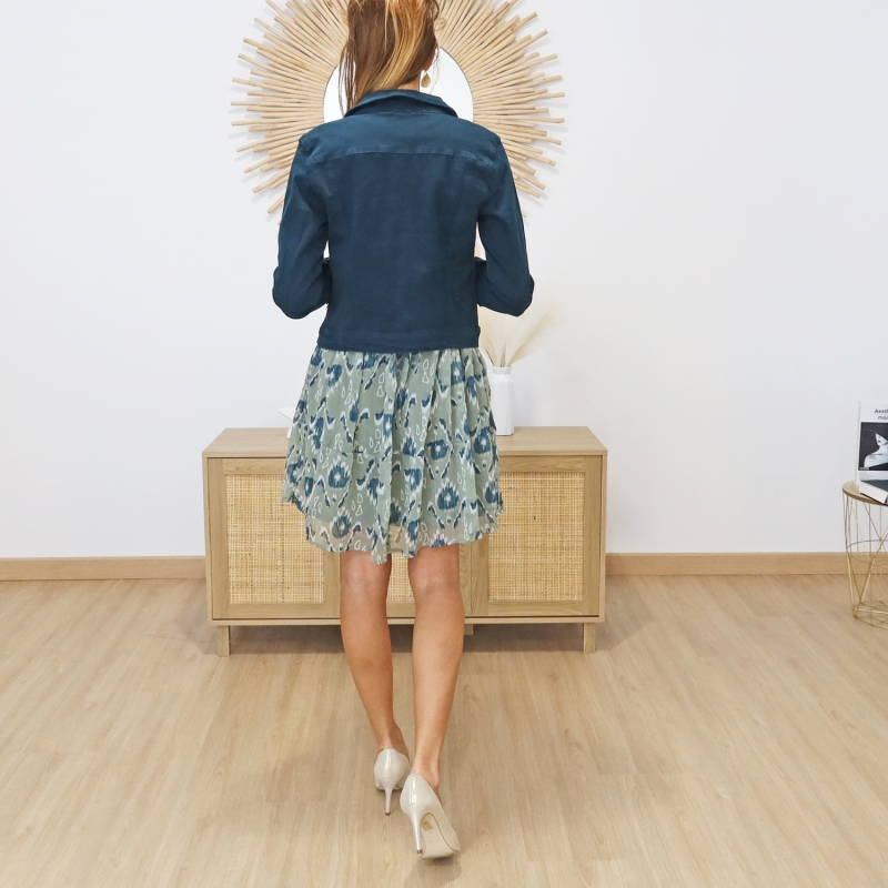 Le mannequin mesure 165cm et présente la taille XS, sa taille habituelle