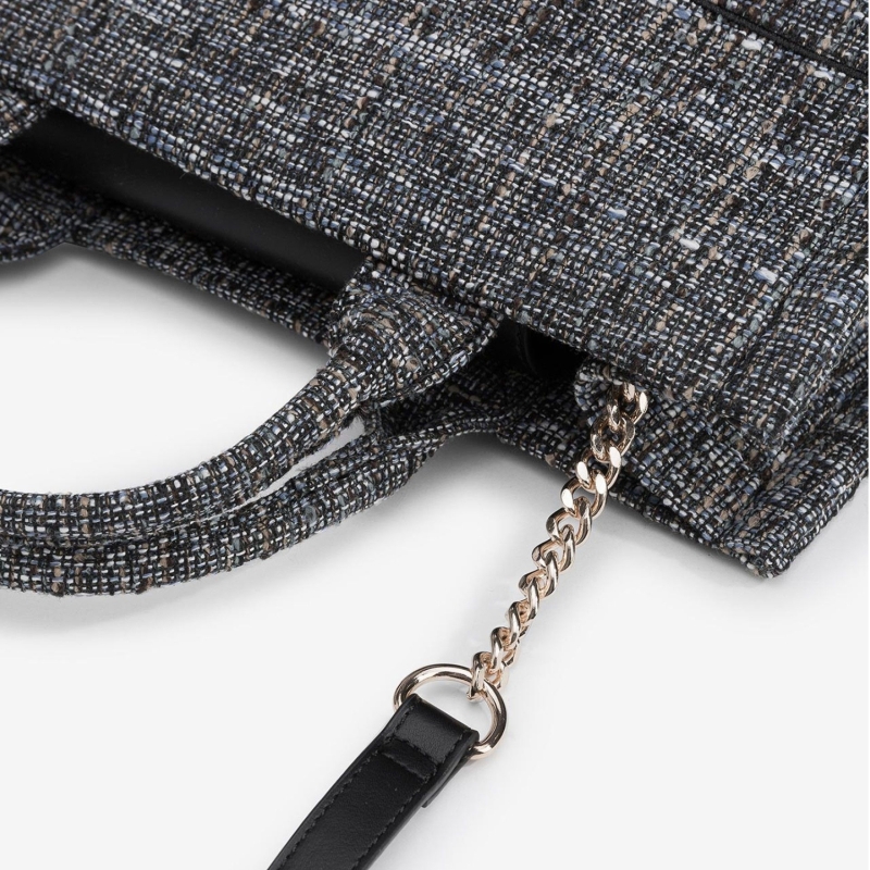 Avec son coloris noir bleuté rehaussé de nuances blanc, choco et beige, ce sac se distingue par son originalité et sa polyvalence. À la fois pratique et esthétique, il offre une fermeture à pression sécurisée ainsi qu’une pochette plate intérieure pour vos essentiels.