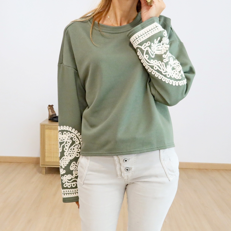 Le mannequin mesure 165 cm, présente la taille unique, porte un petit 36 habituellement