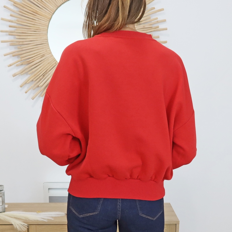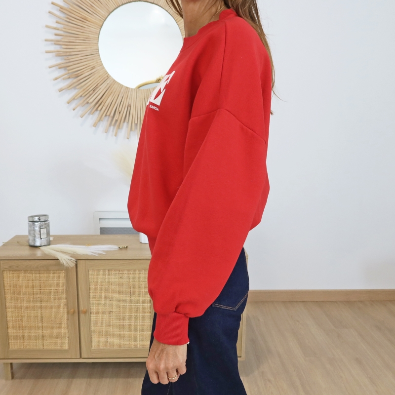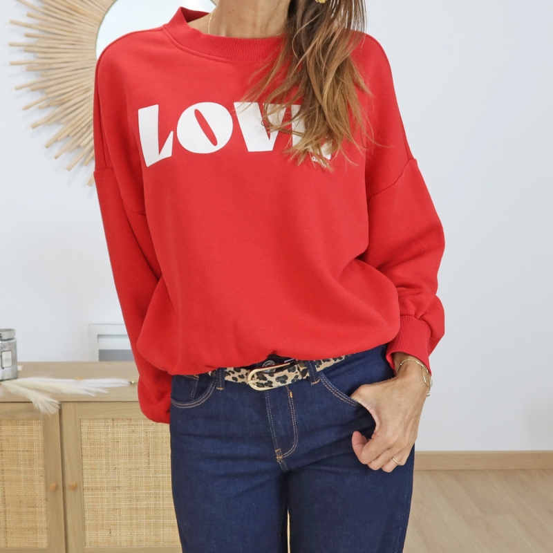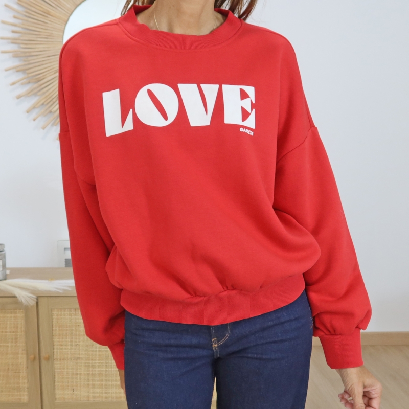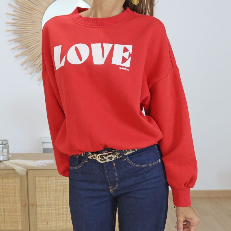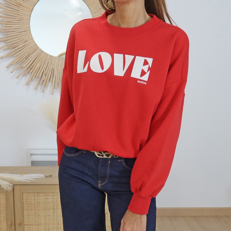 Sweat Garcia rouge oversize ❤️ : molleton doux, imprimé LOVE blanc tendance, coupe cool et confortable au quotidien