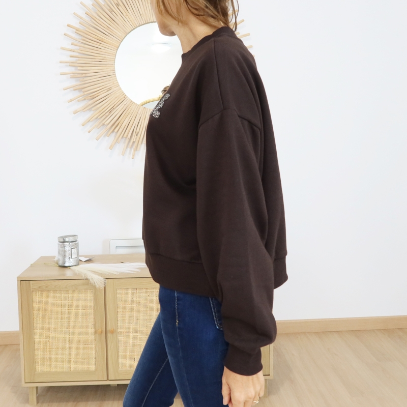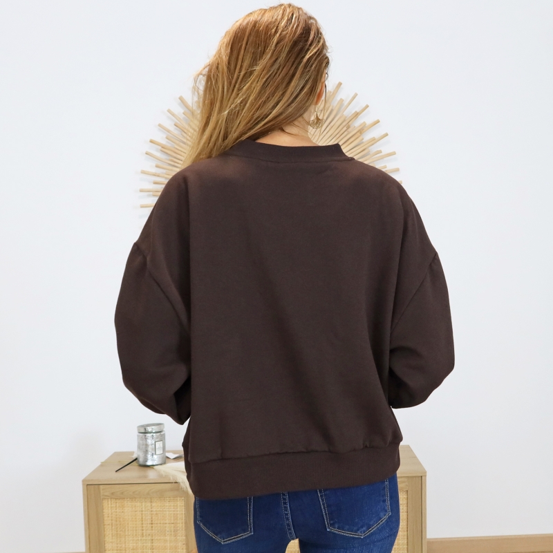 Sweat femme KALISE Kaffe â chocolat inscription pailletĂ©e