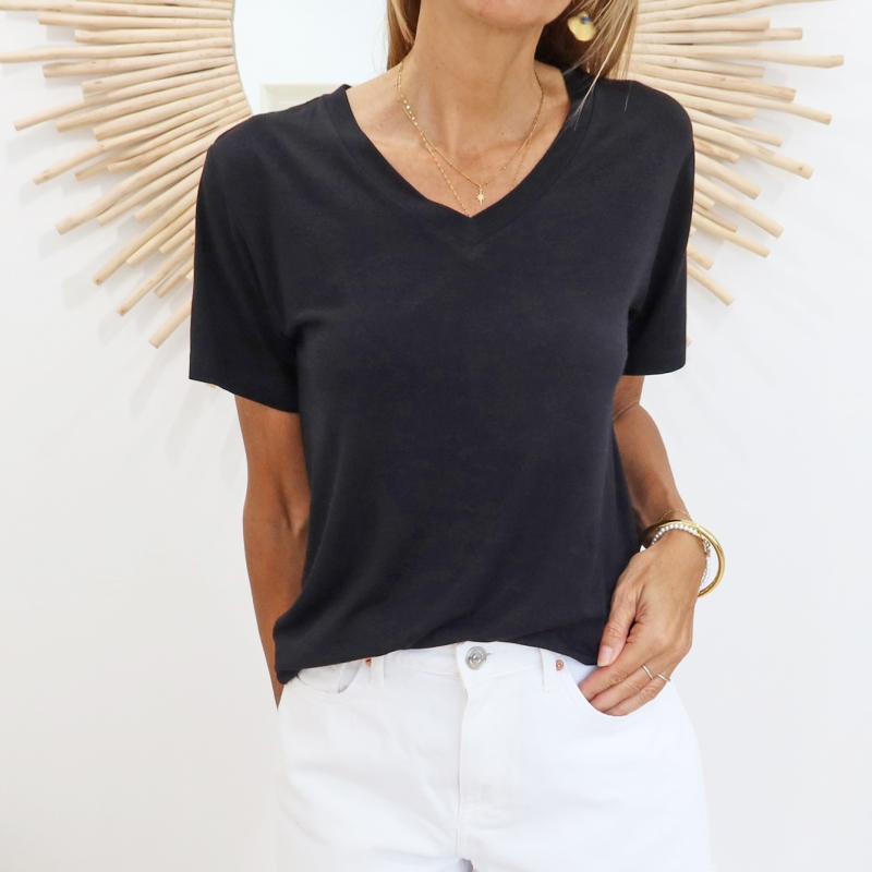 Le mannequin mesure 165 cm, présente la taille XS, sa taille habituelle