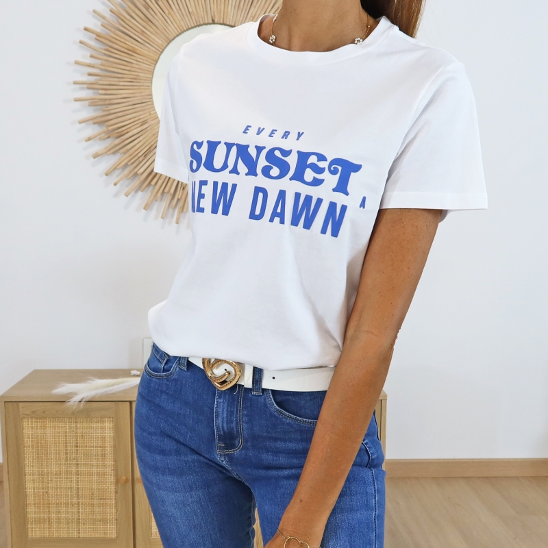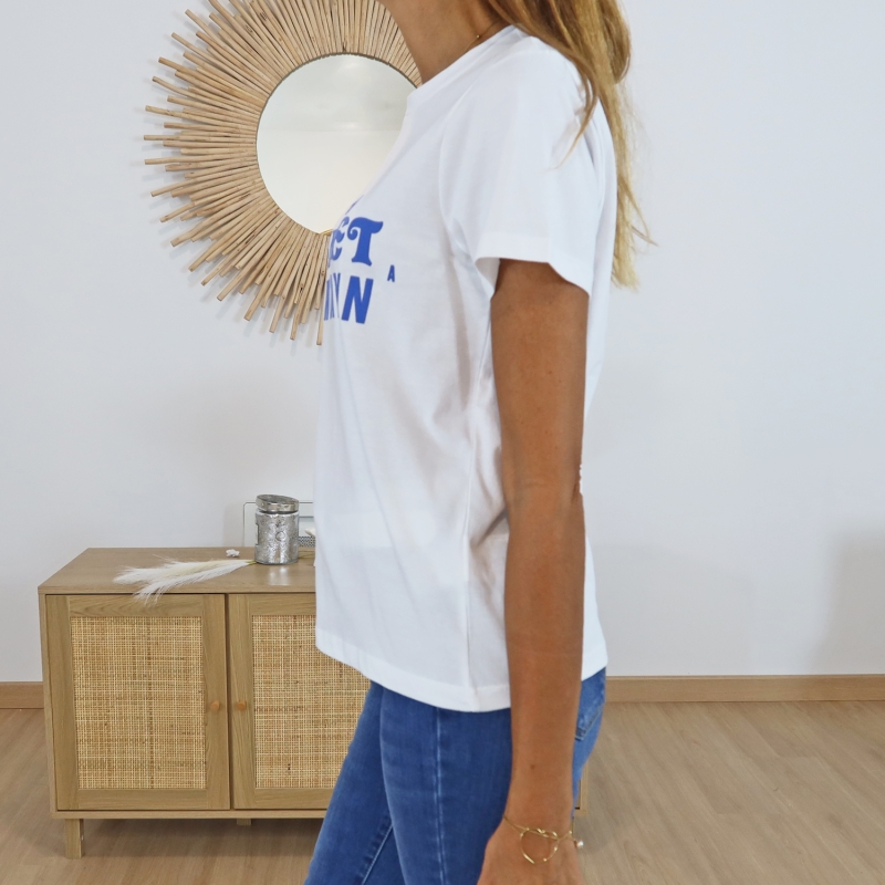 Coloris blanc, écriture bleue