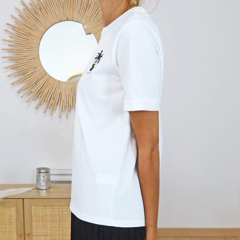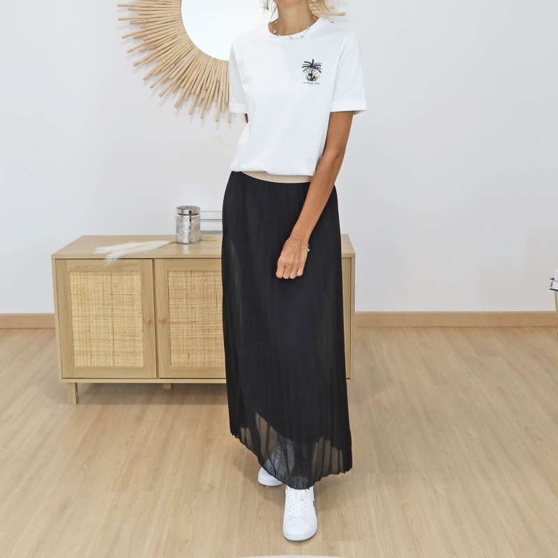 Le mannequin mesure 165 cm, présente la taille XS, sa taille habituelle