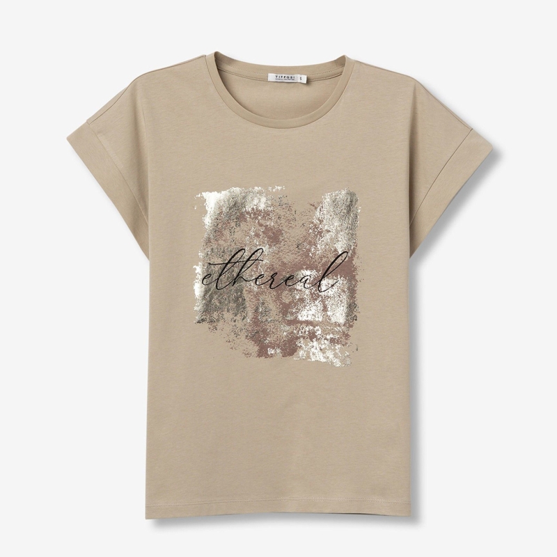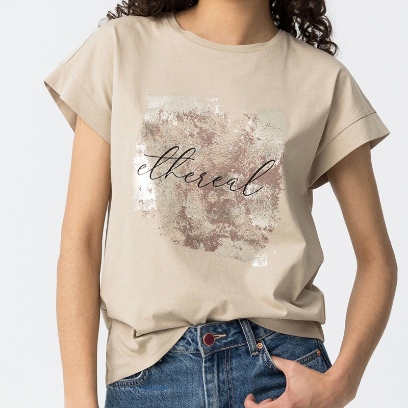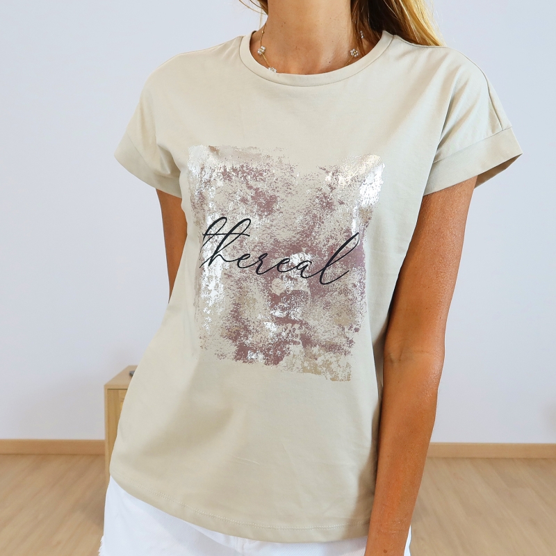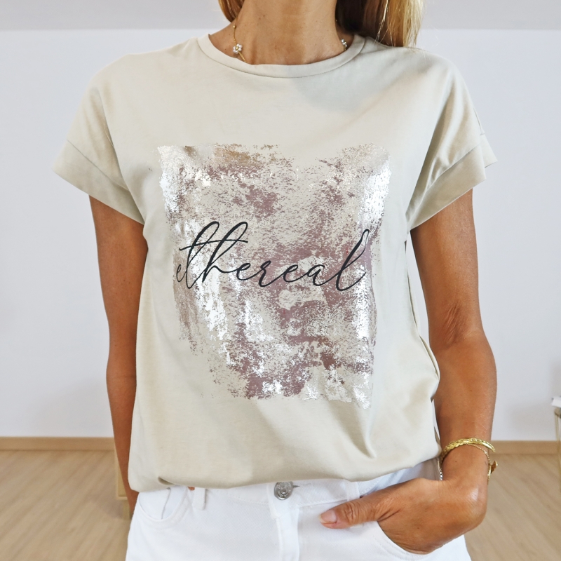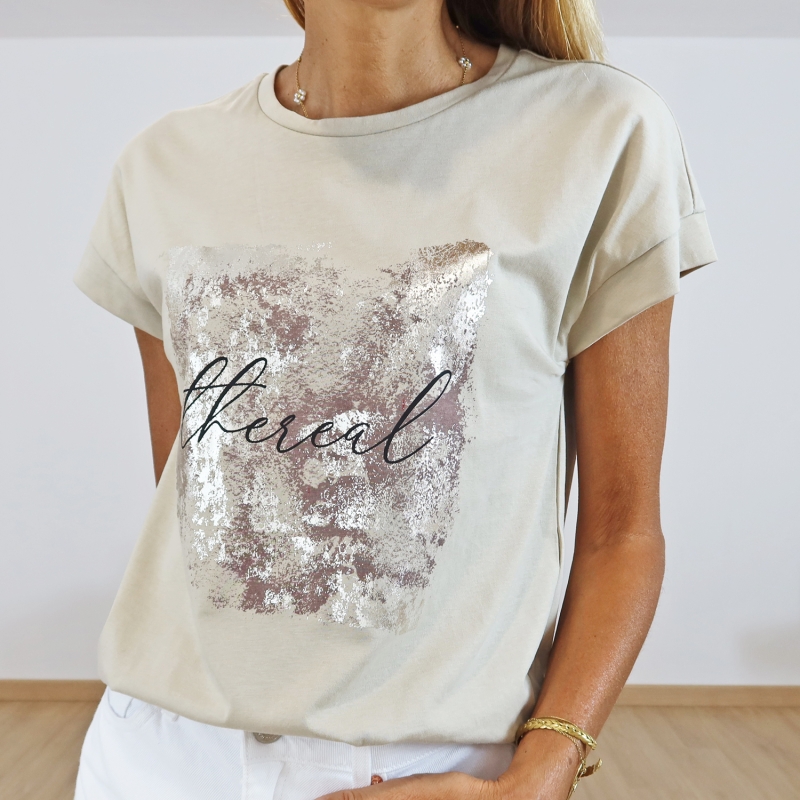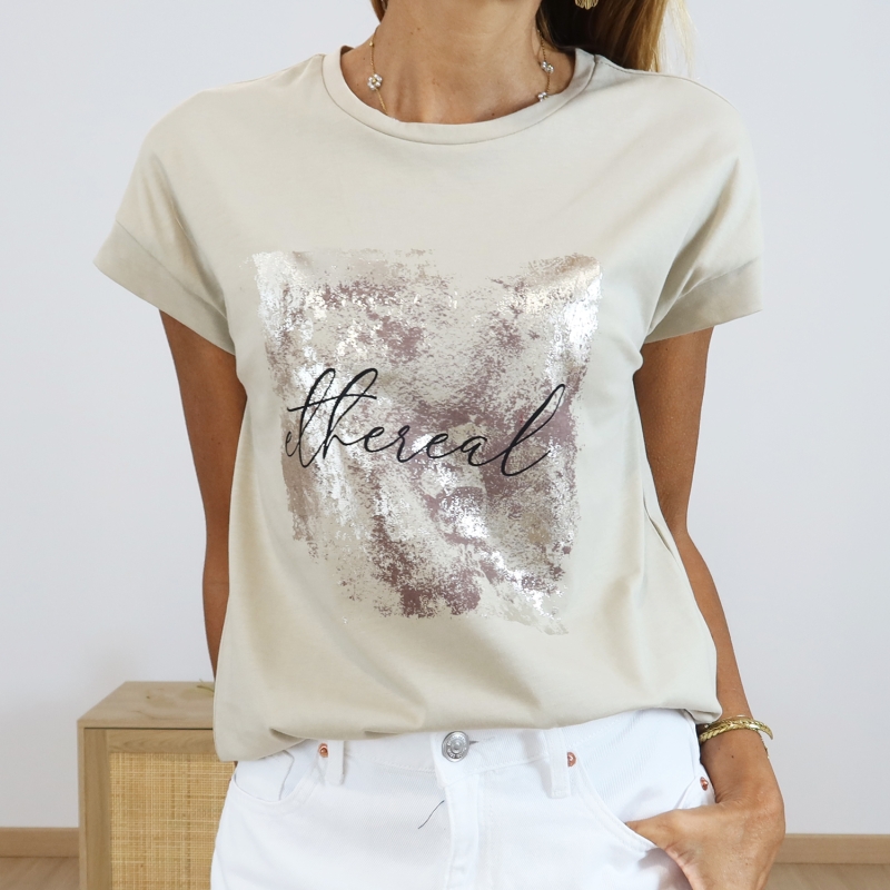 Coloris beige, fantaisie impression doré clair et chocolat