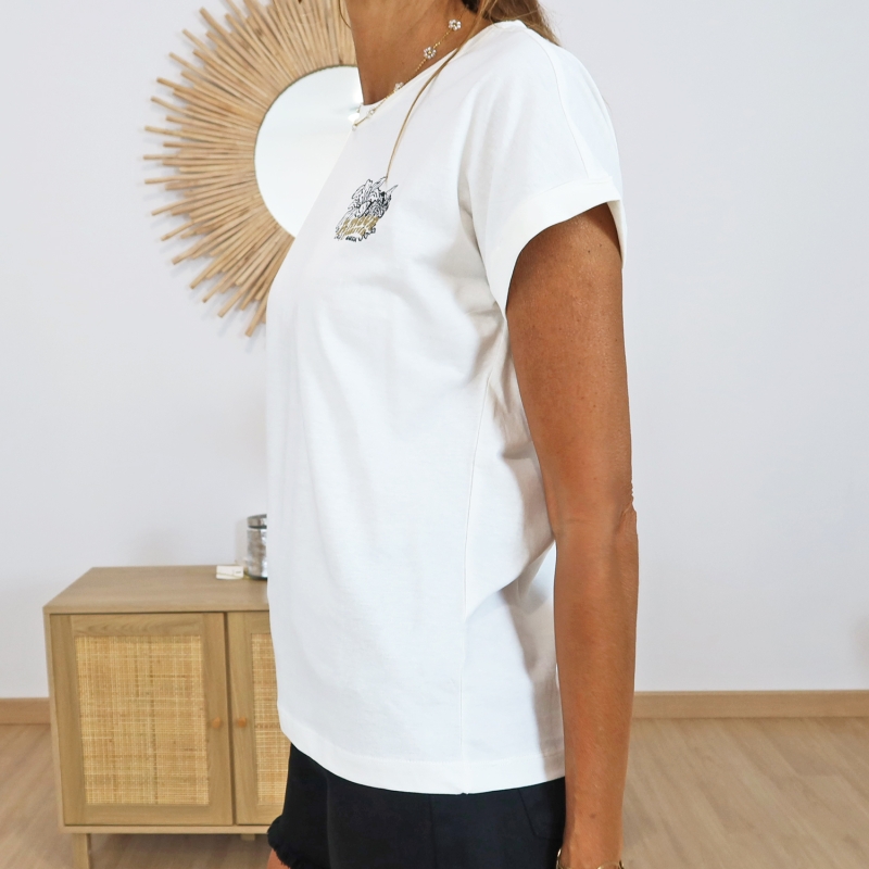 T-shirt coloris Blanc Cassé 100% Coton