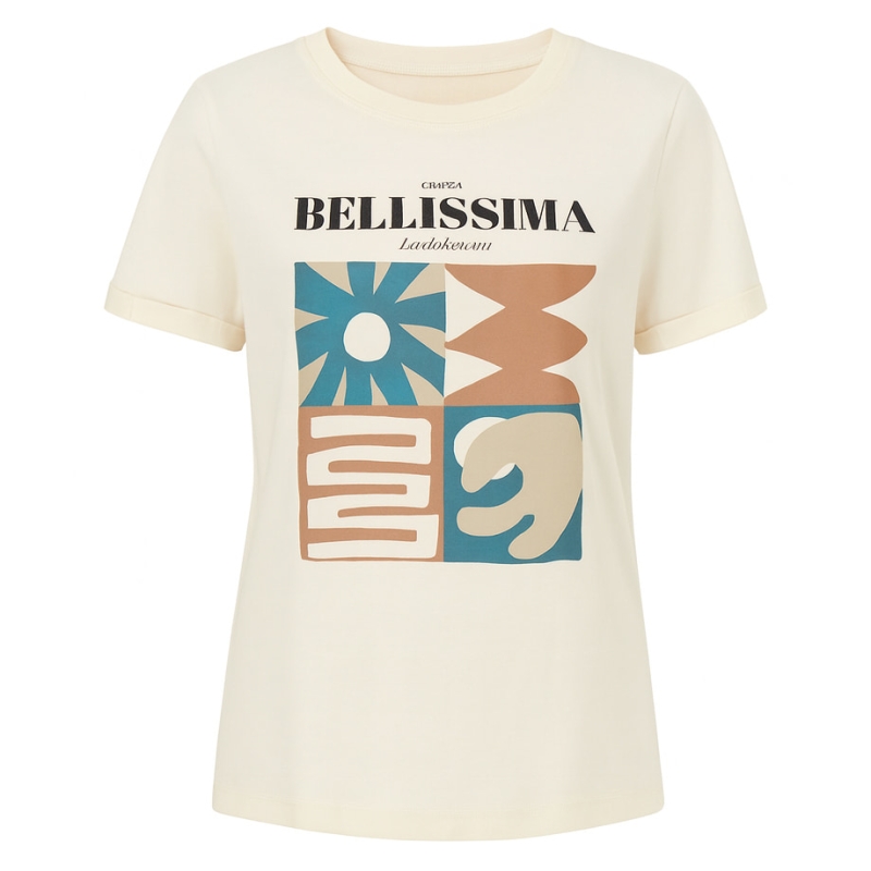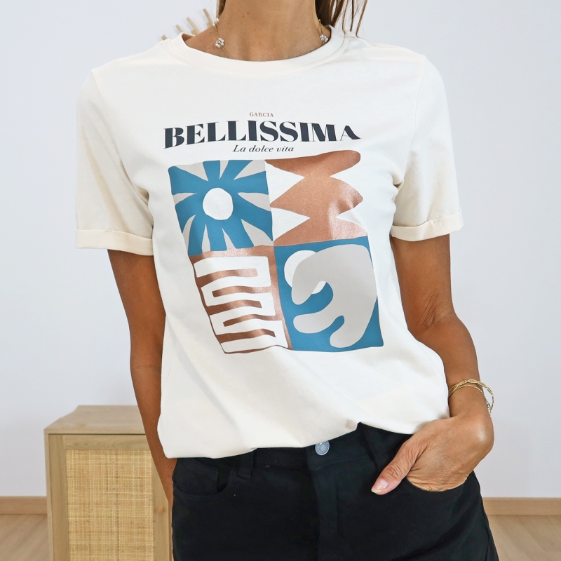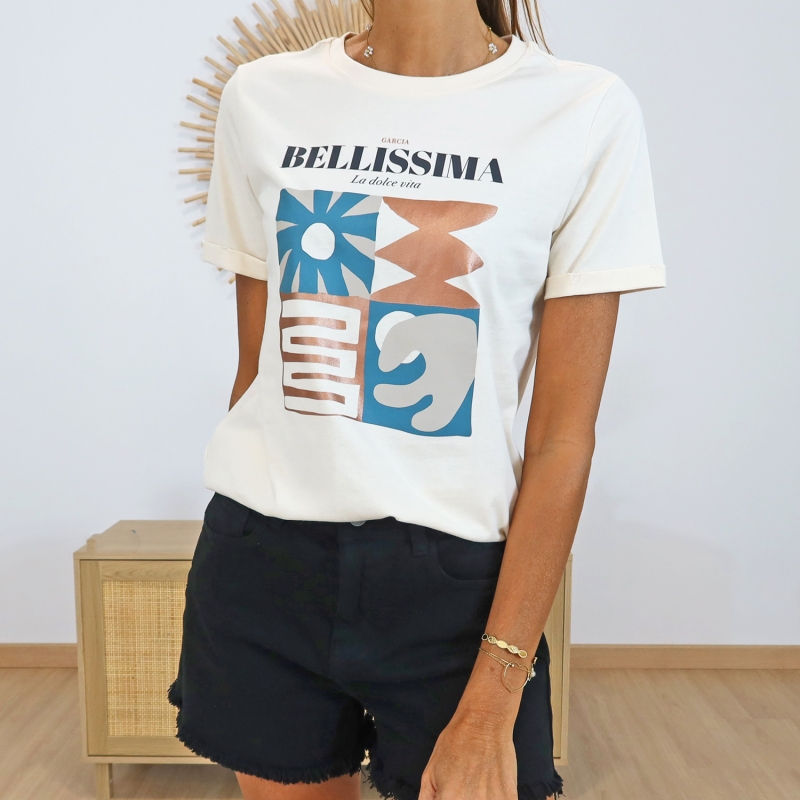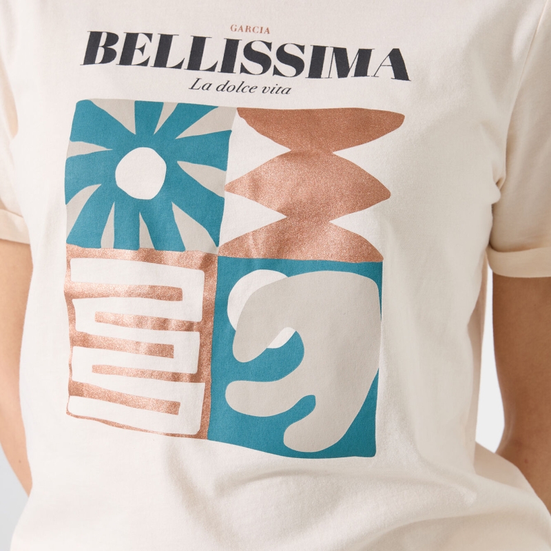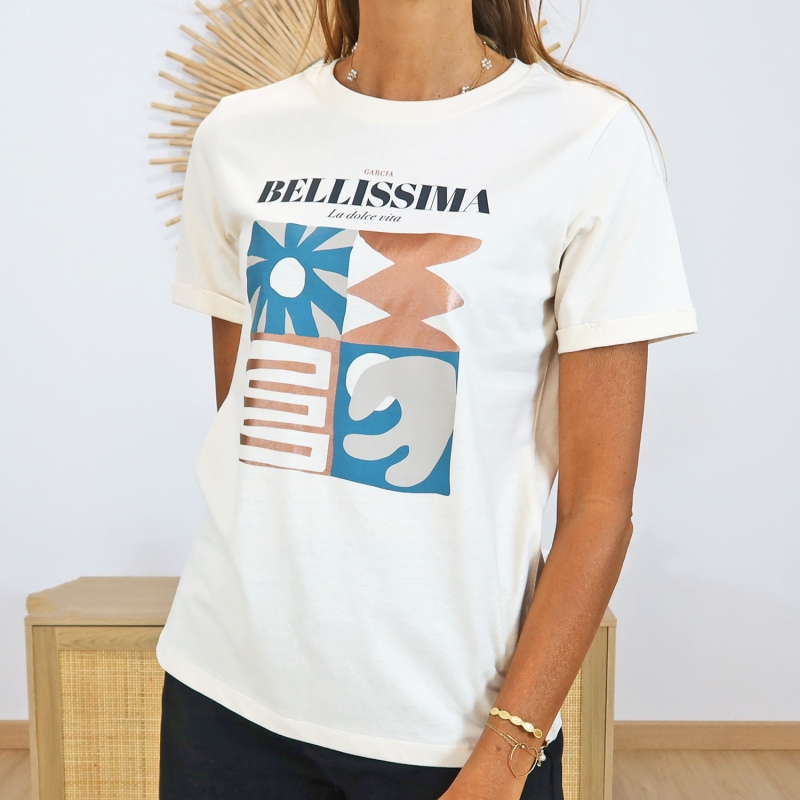 T-shirt Femme Garcia "Bellissima" - Écru Vanille & Impressions Vibrantes