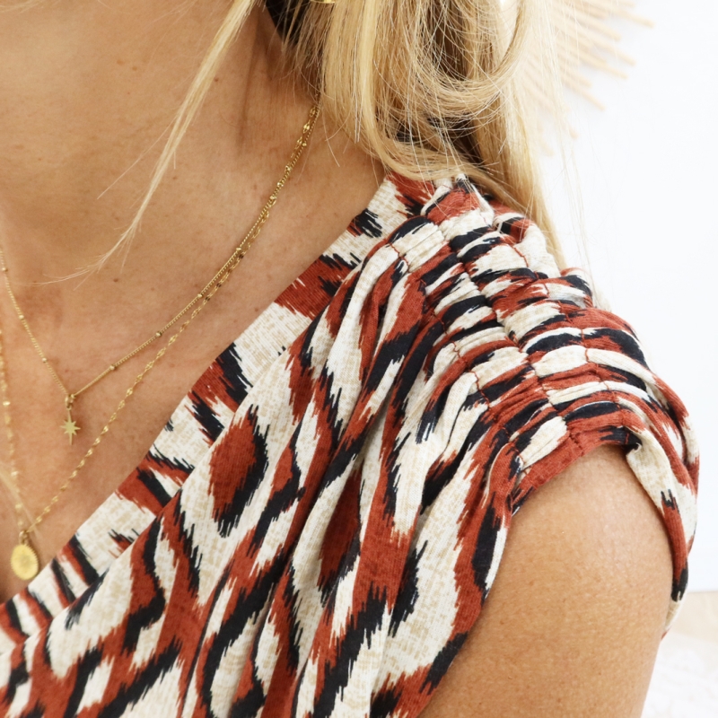 Le mannequin mesure 165 cm, présente la taille XS, sa taille Habituelle.