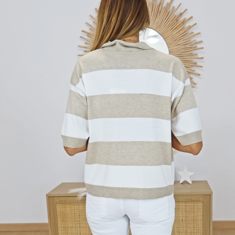 Le mannequin mesure 165 cm, présente la taille XS, porte habituellement un petit 36