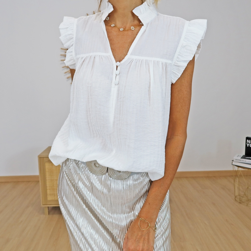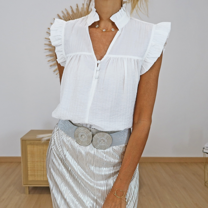 Le mannequin mesure 165 cm, présente la taille XS, sa taille habituelle