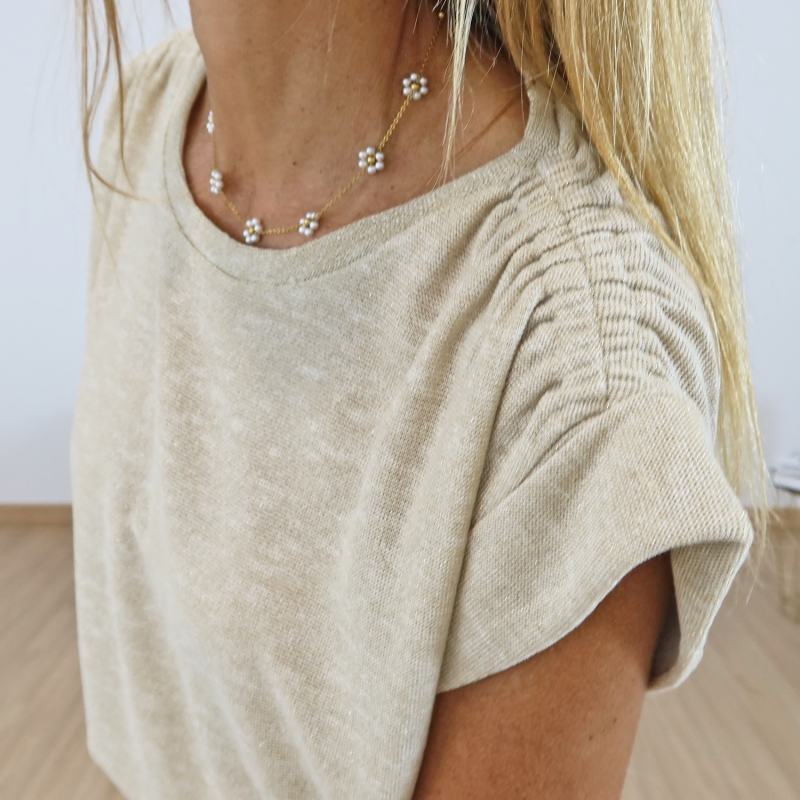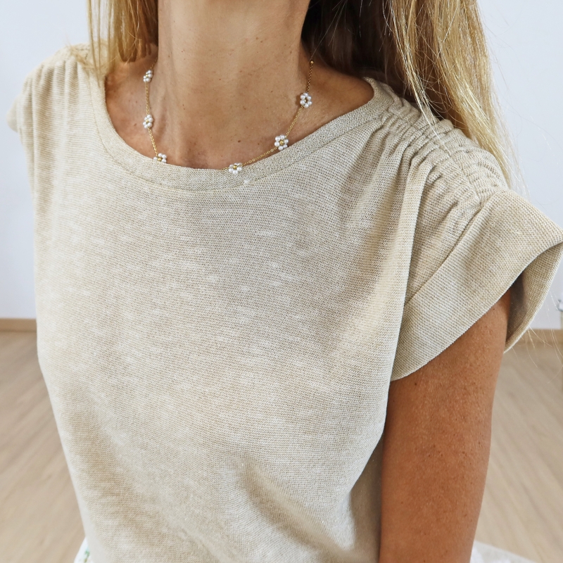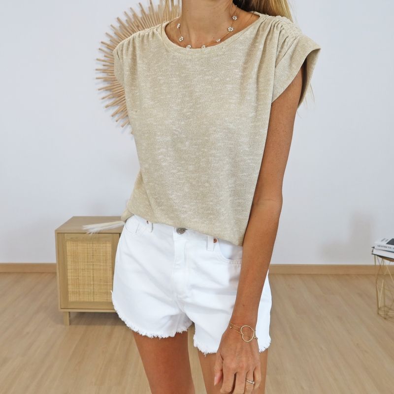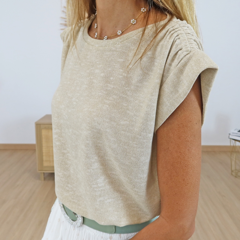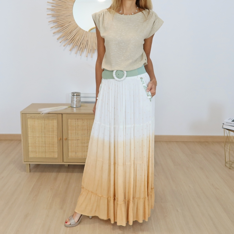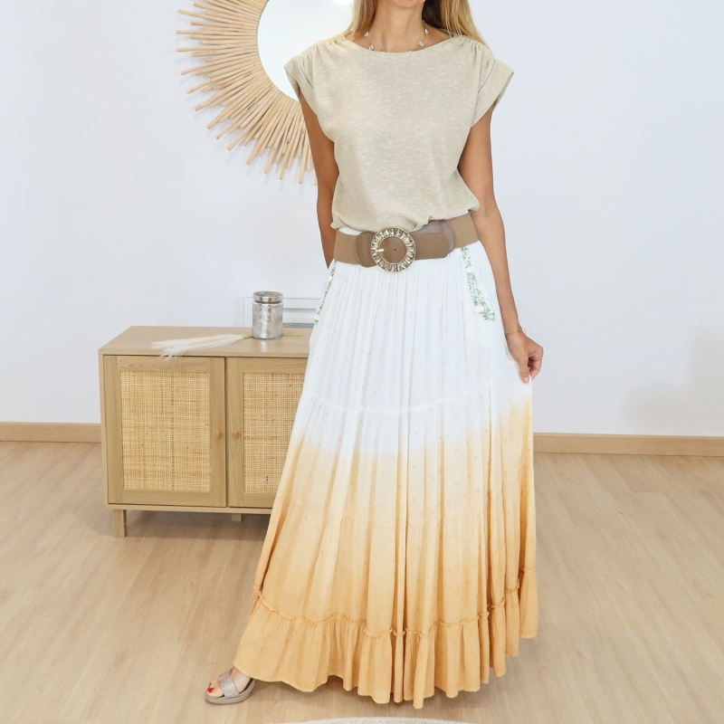 Le mannequin mesure 165 cm, présente la taille 34, sa taille habituelle.