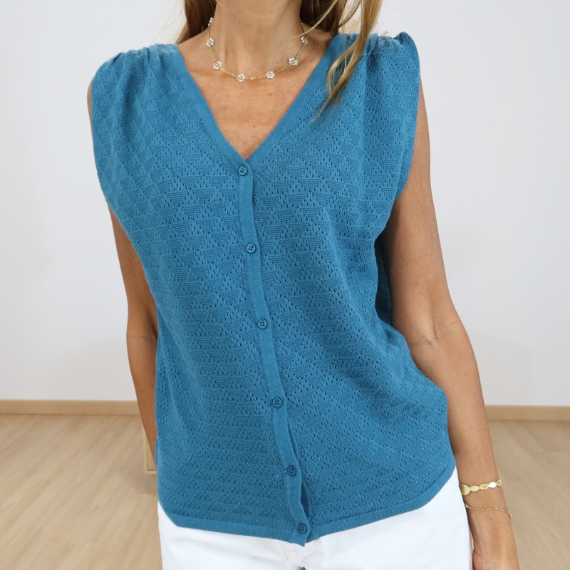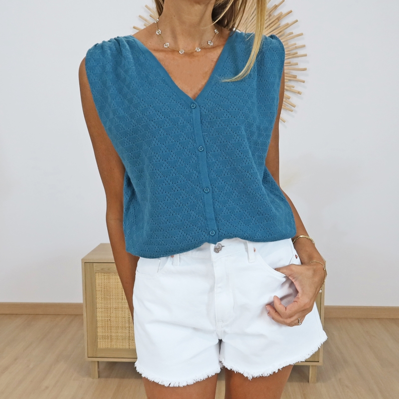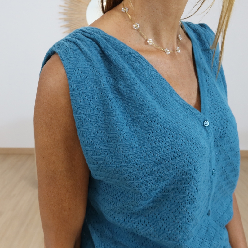Top en Maille Fine Réversible - Bleu "Lagon"