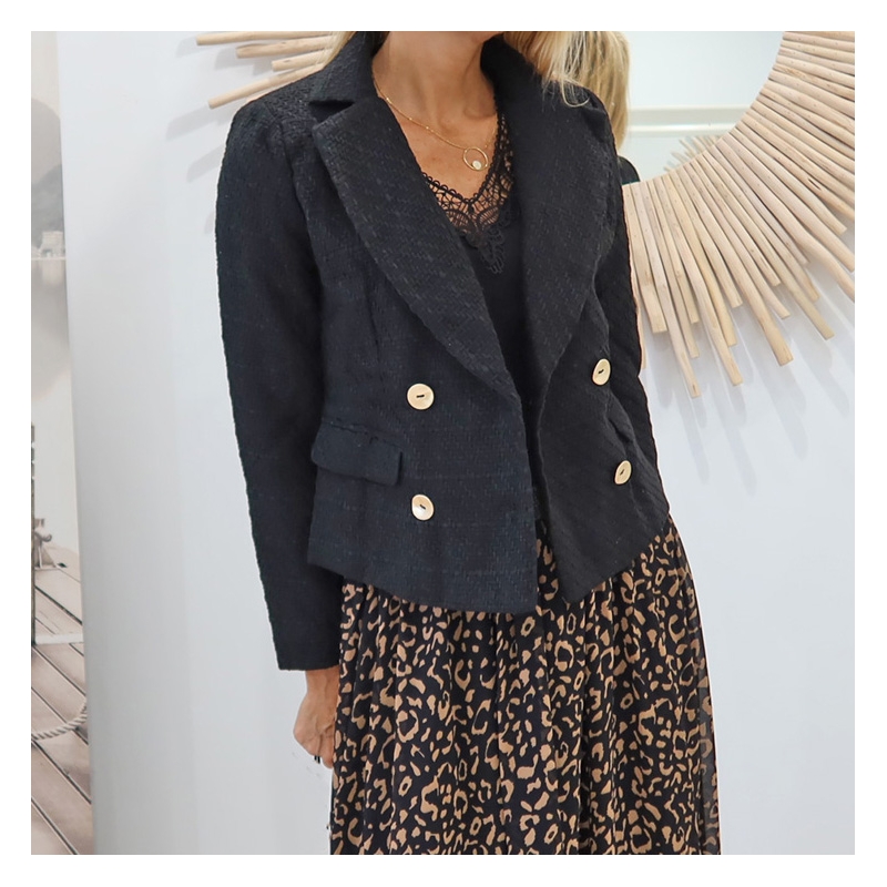 Le mannequin mesure 165 cm, présente la taille S, sa taille habituelle