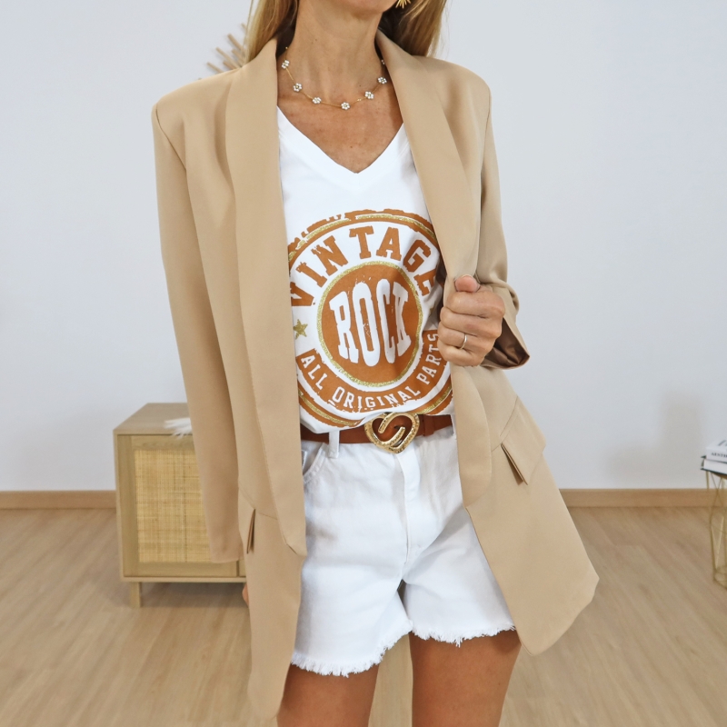 Le mannequin mesure 165 cm, présente la taille S, sa taille habituelle.