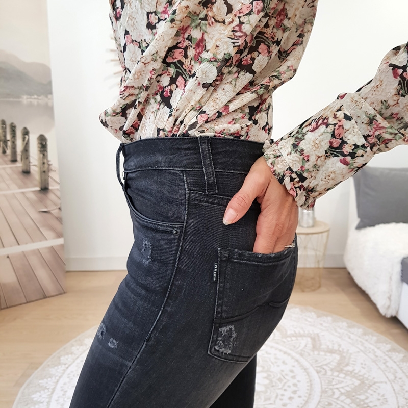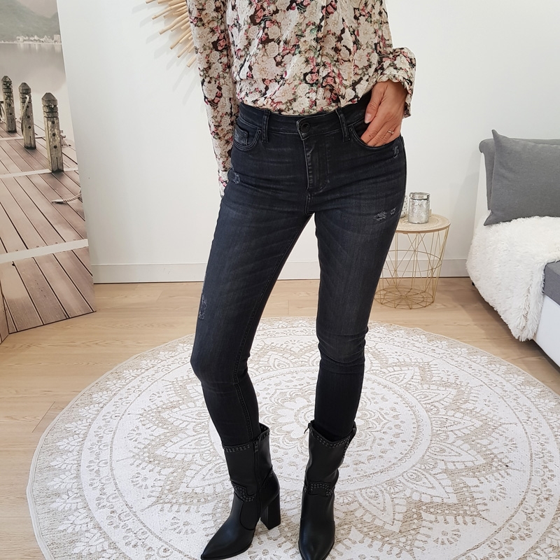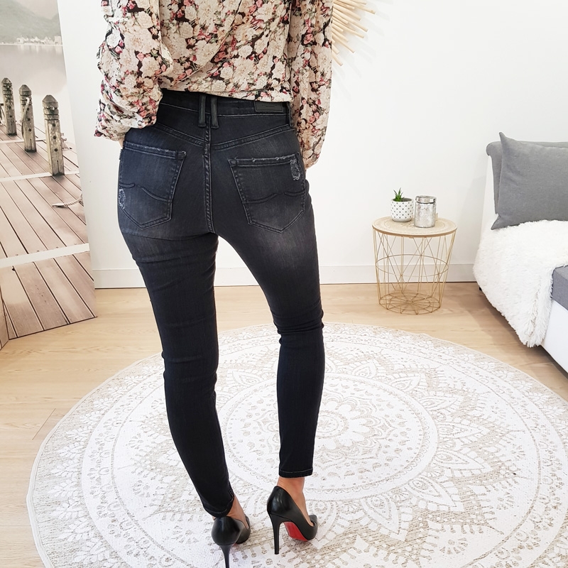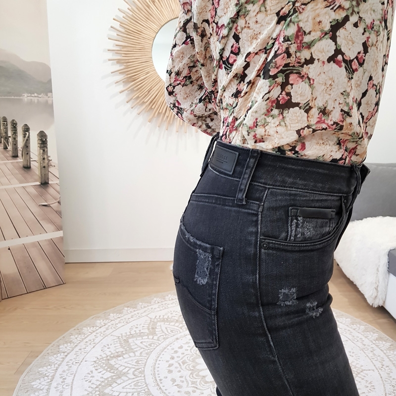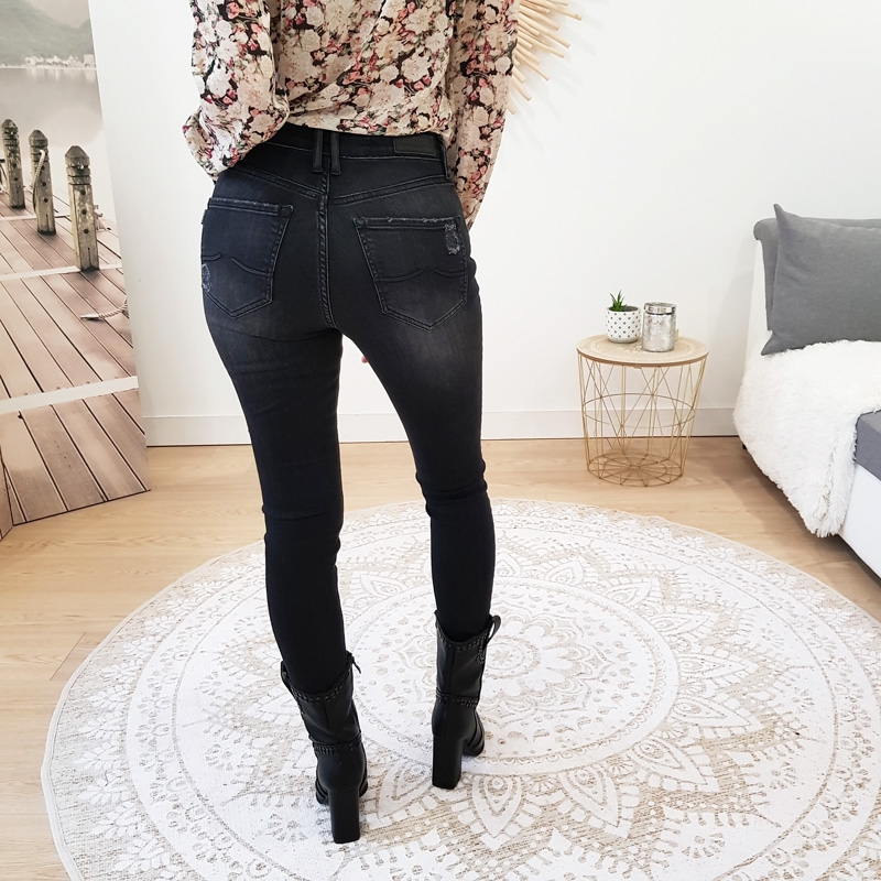 Cette fibre élastique affine les tissus denim, Leur structure moléculaire garantit durablement que le tissu étiré retrouve sa forme originelle lorsqu'il n'est pas sollicitéLe mannequin mesure 165 cm, présente la taille 36 sa taille habituelle-